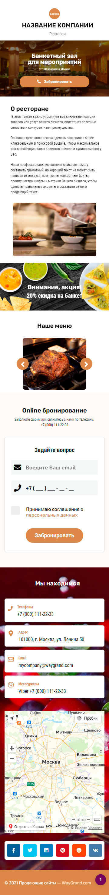 Закажите готовый продающий сайт визитка #0449101 в Соликамске за 5-7 дня «под ключ»: свёрстан, отрисован и готов к рекламе. Тематика шаблона «Банкетный зал для мероприятий».