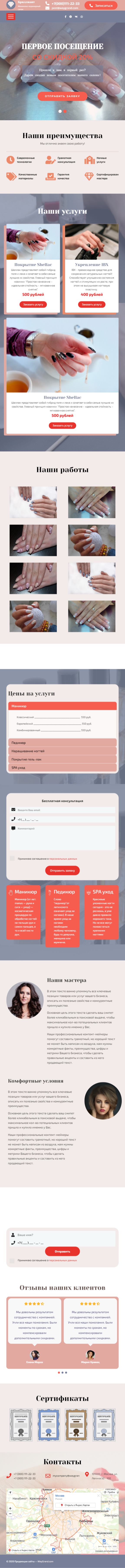 Закажите готовый продающий сайт лендинг #1107201 в Соликамске за 1-3 дня «под ключ»: свёрстан, отрисован и готов к рекламе. Тематика шаблона «Салон маникюра и педикюра».