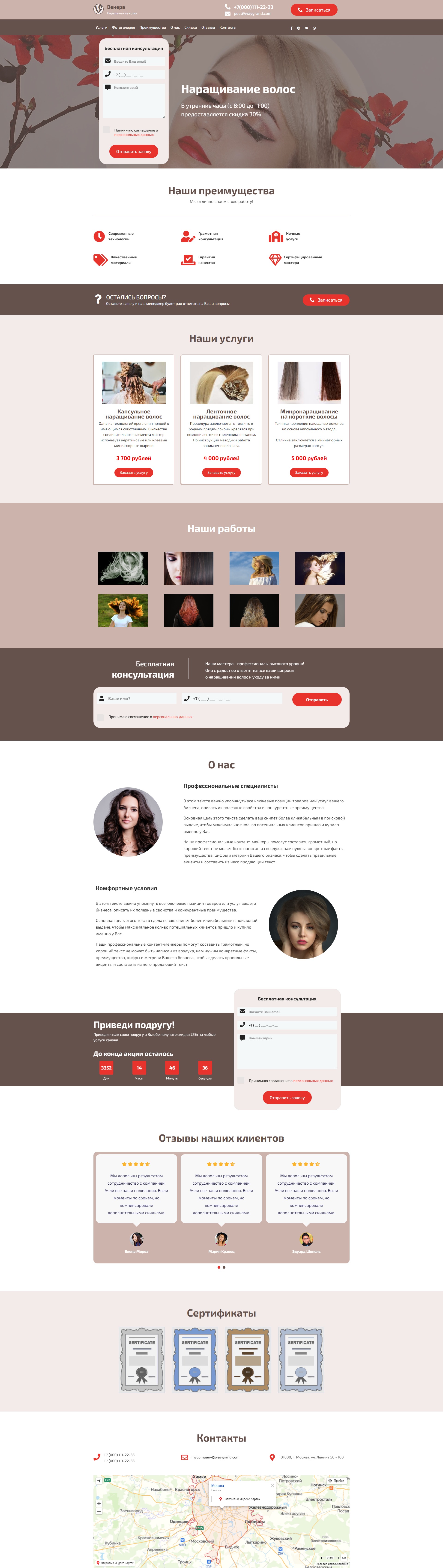 Закажите готовый продающий сайт лендинг #1108201 в Соликамске за 1-3 дня «под ключ»: свёрстан, отрисован и готов к рекламе. Тематика шаблона «Наращивание волос».