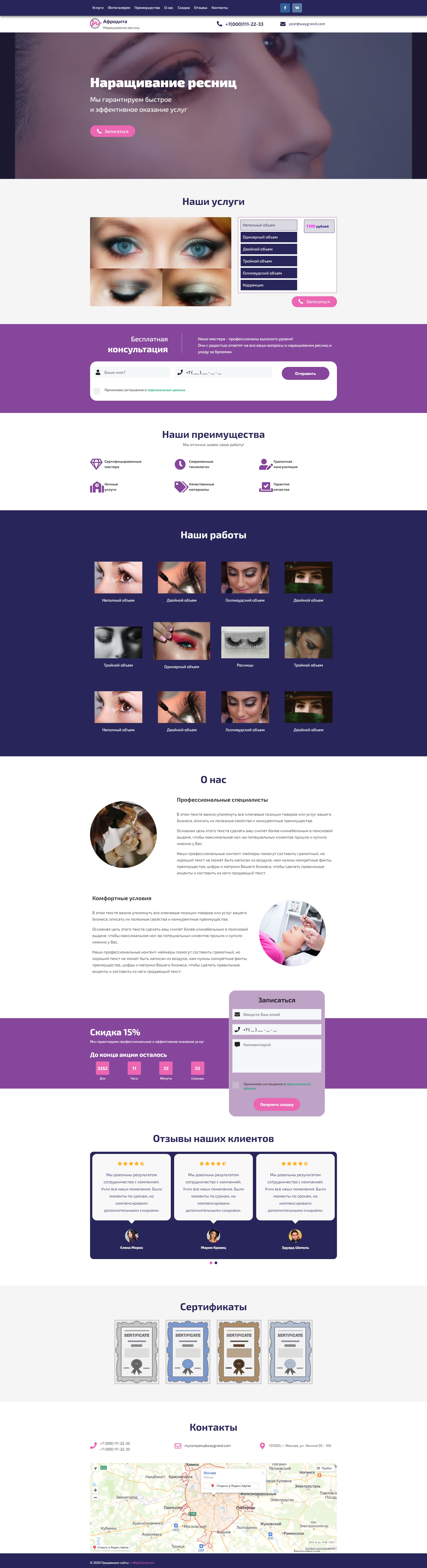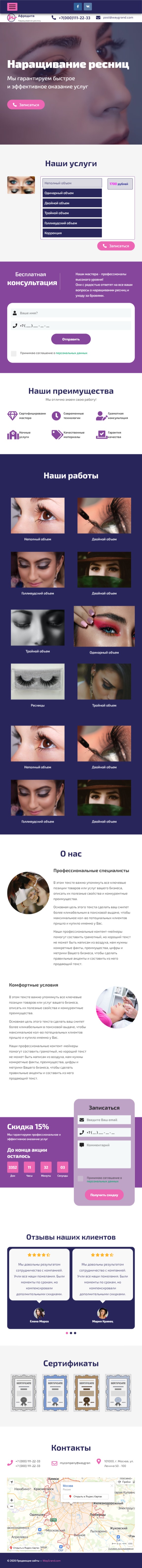 Закажите готовый продающий сайт лендинг #1117201 в Соликамске за 1-3 дня «под ключ»: свёрстан, отрисован и готов к рекламе. Тематика шаблона «Наращивание ресниц».