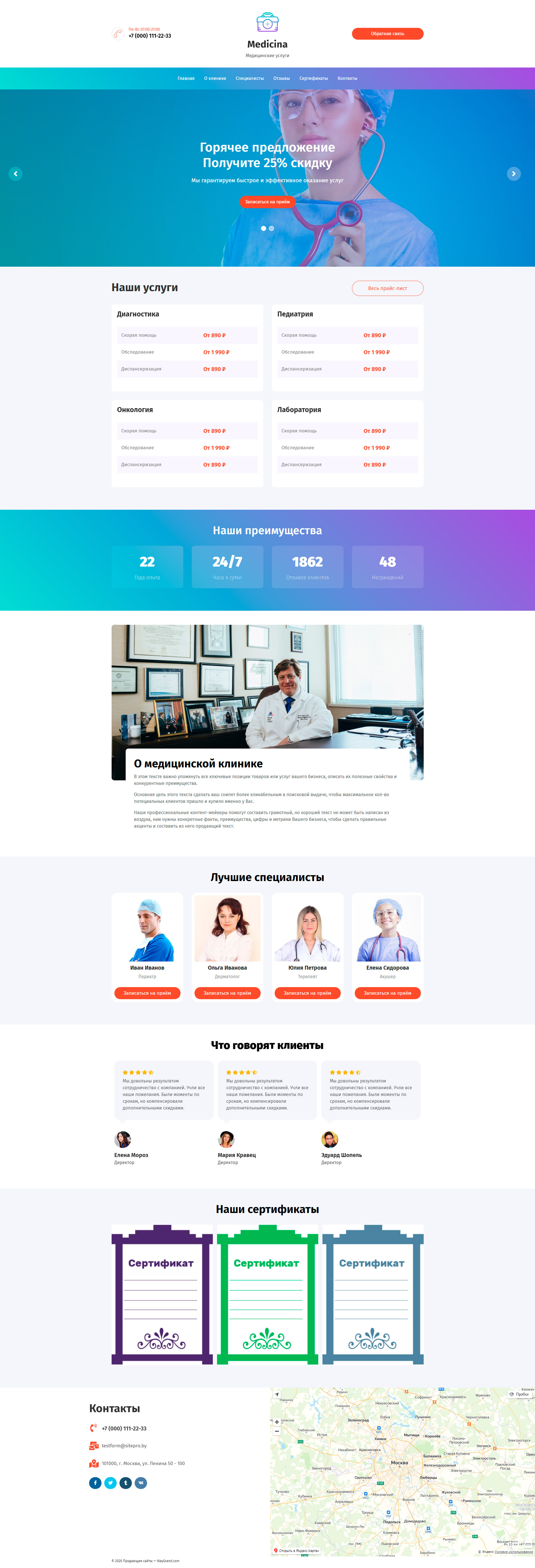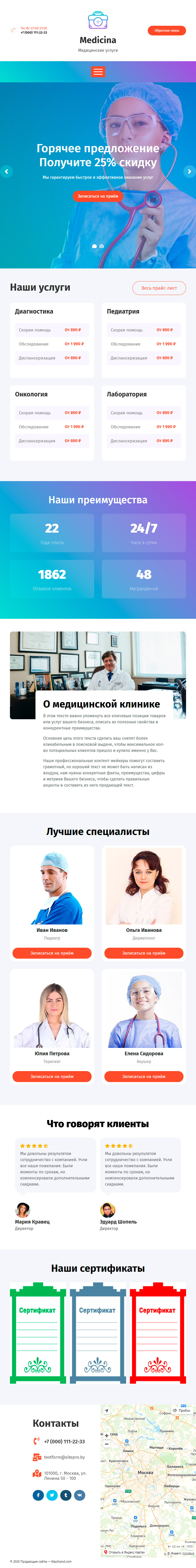 Закажите готовый продающий сайт лендинг #1030201 в Соликамске за 1-3 дня «под ключ»: свёрстан, отрисован и готов к рекламе. Тематика шаблона «Медицинские услуги».