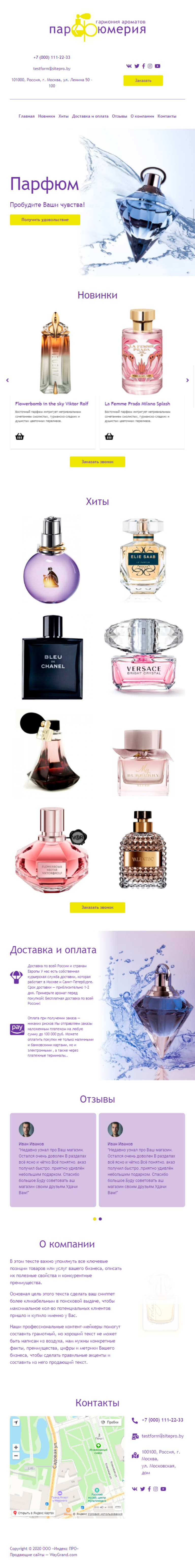 Закажите готовый продающий сайт лендинг #1030202 в Соликамске за 1-3 дня «под ключ»: свёрстан, отрисован и готов к рекламе. Тематика шаблона «Парфюмерия».