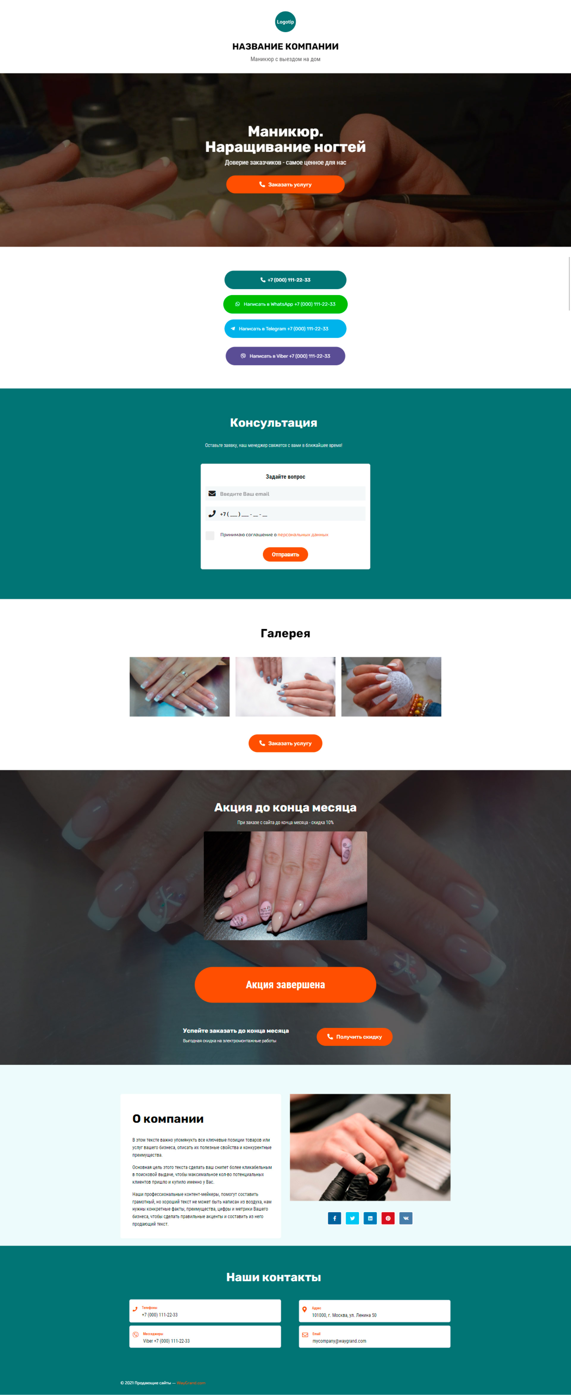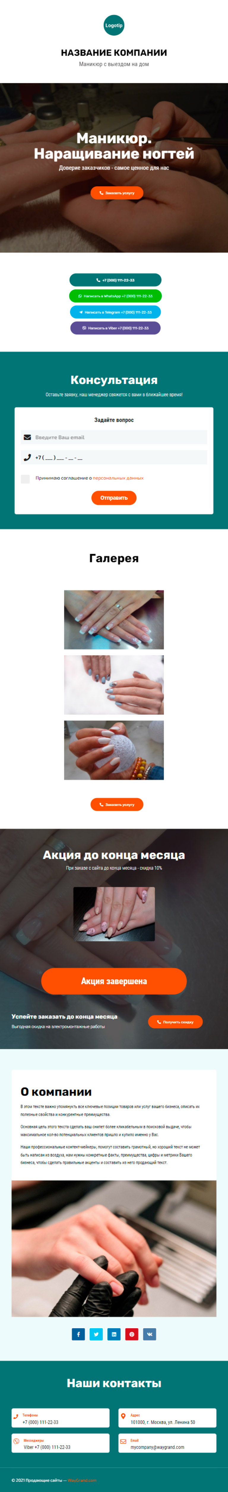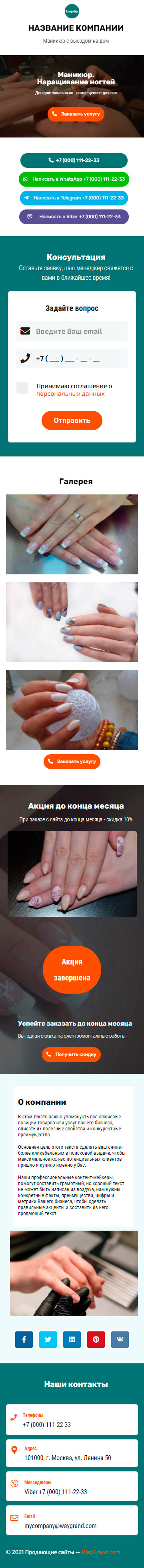 Закажите готовый продающий сайт визитка #1107101 в Соликамске за 5-7 дня «под ключ»: свёрстан, отрисован и готов к рекламе. Тематика шаблона «Маникюр. Наращивание ногтей».