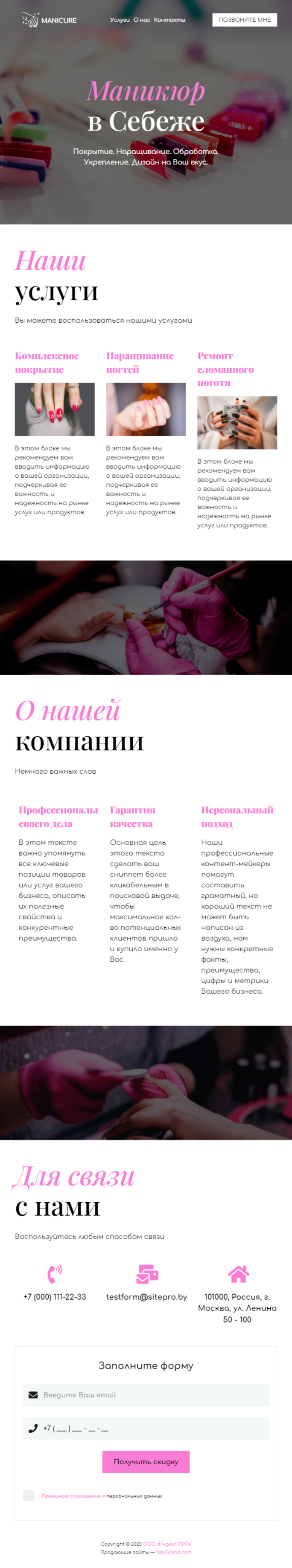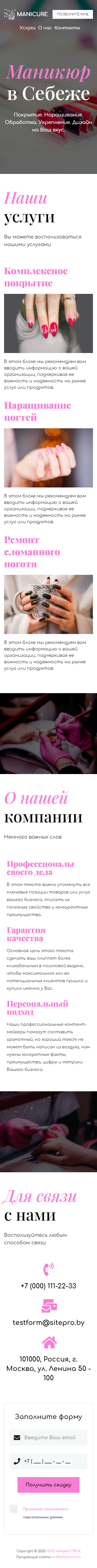 Закажите готовый продающий сайт визитка #1107102 в Соликамске за 5-7 дня «под ключ»: свёрстан, отрисован и готов к рекламе. Тематика шаблона «Маникюр в Себеже».