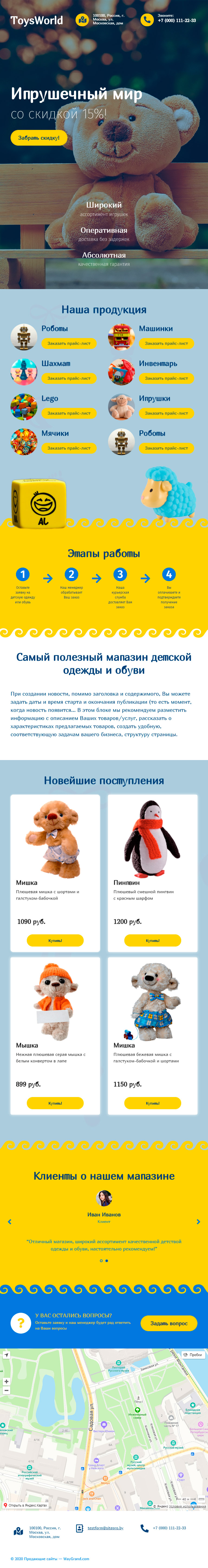 Закажите готовый продающий сайт лендинг #1509201 в Соликамске за 1-3 дня «под ключ»: свёрстан, отрисован и готов к рекламе. Тематика шаблона «Игрушечный мир».