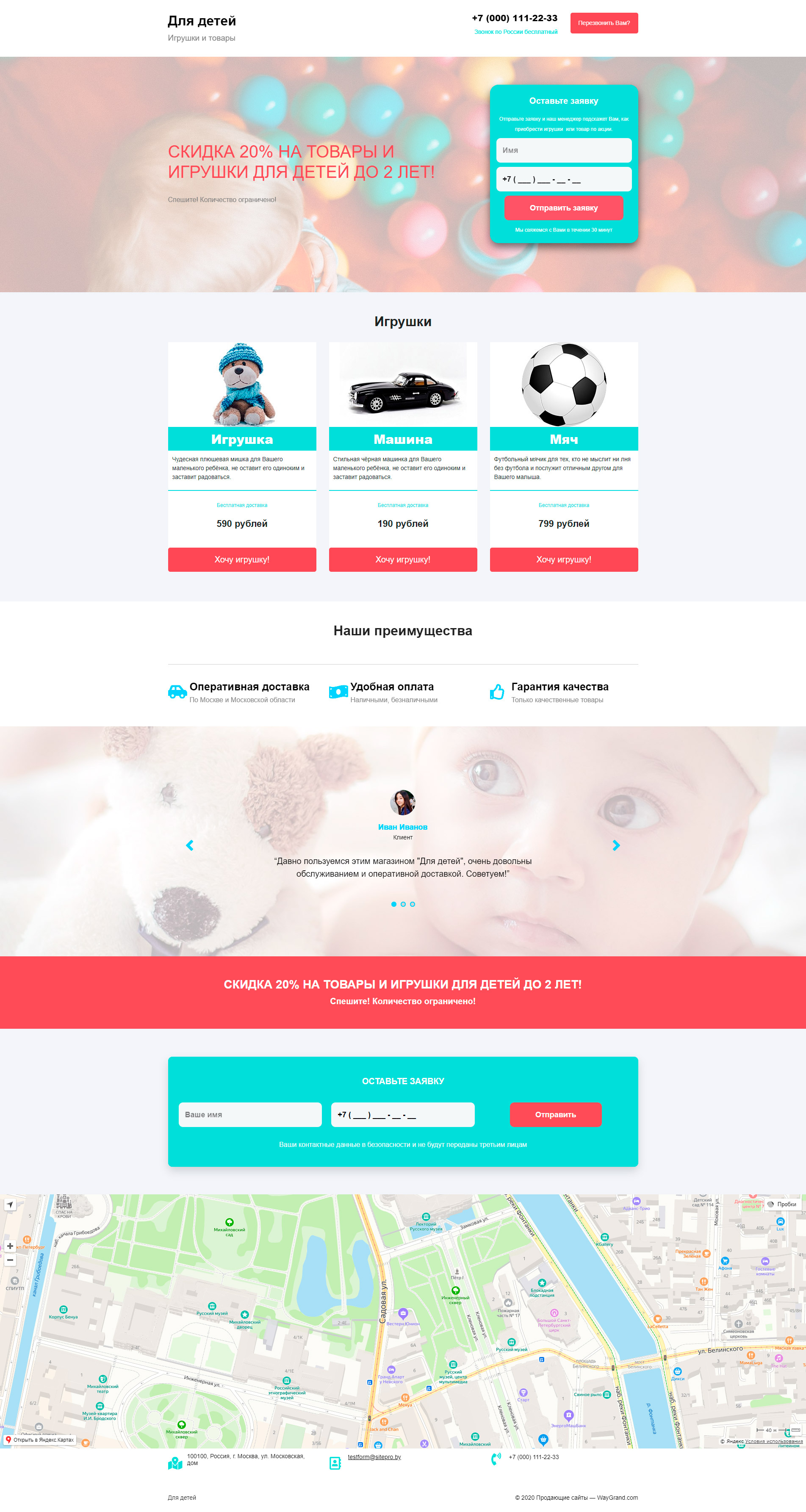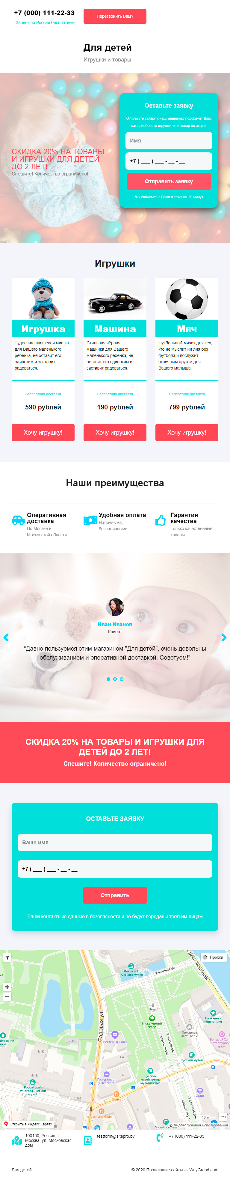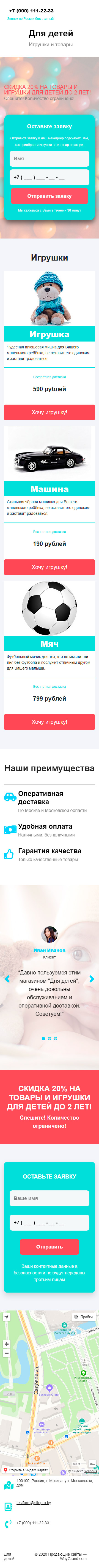 Закажите готовый продающий сайт лендинг #1509202 в Соликамске за 1-3 дня «под ключ»: свёрстан, отрисован и готов к рекламе. Тематика шаблона «Игрушки и товары».