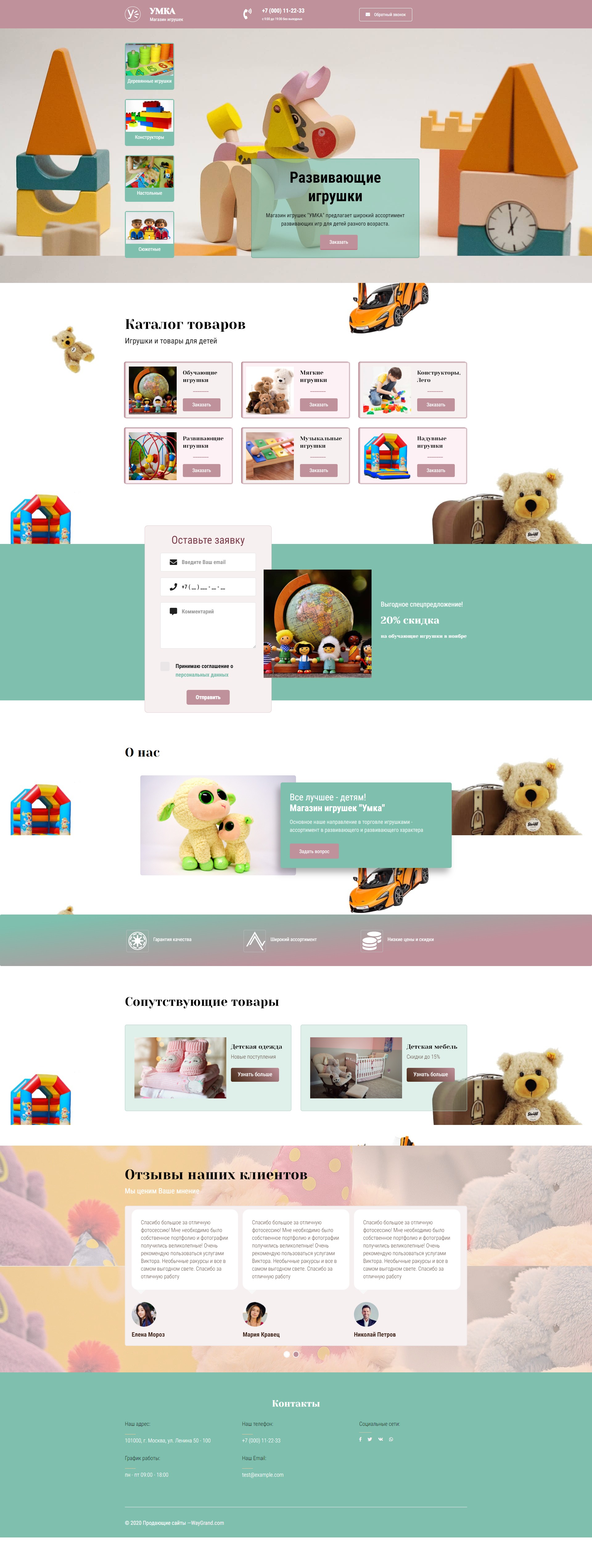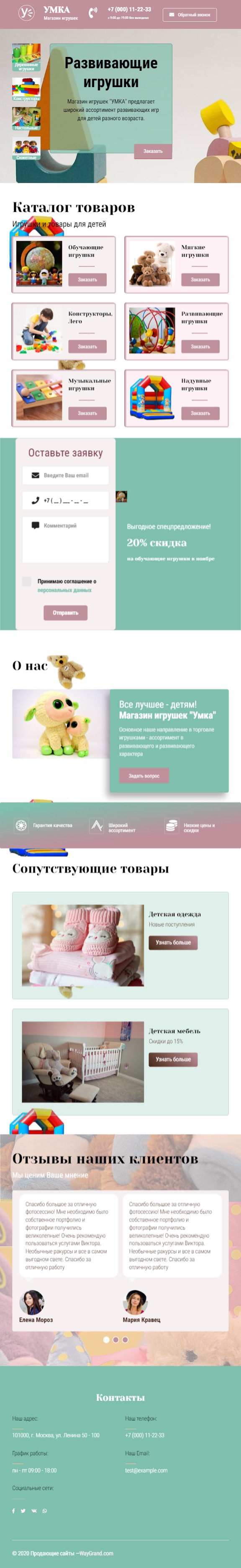 Закажите готовый продающий сайт лендинг #2442201 в Соликамске за 1-3 дня «под ключ»: свёрстан, отрисован и готов к рекламе. Тематика шаблона «Магазин игрушек».