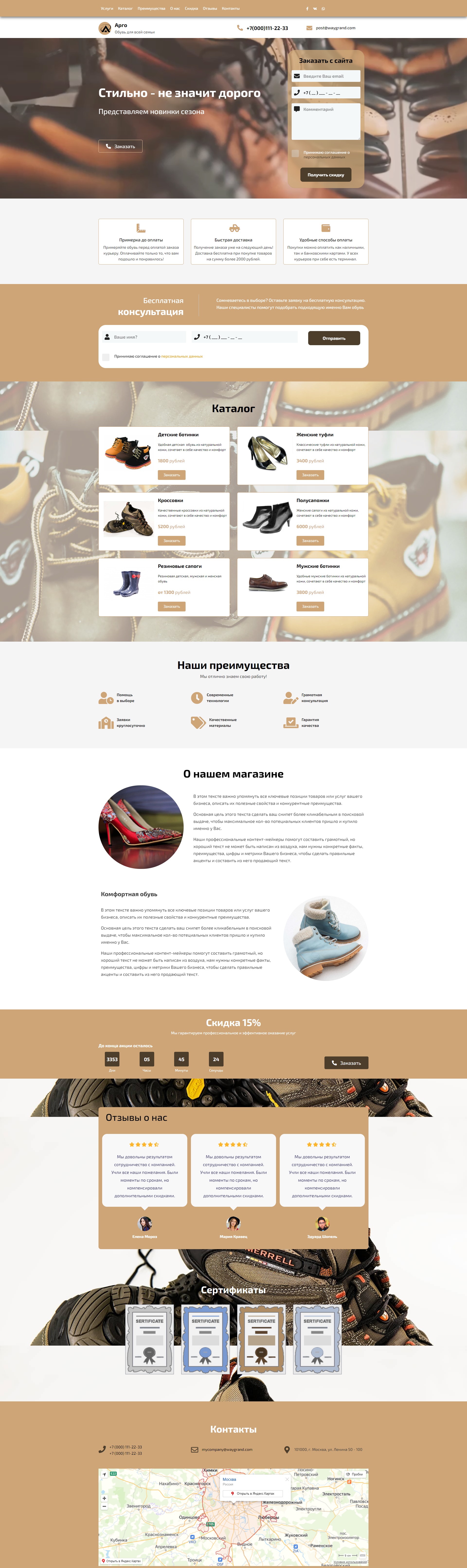 Закажите готовый продающий сайт лендинг #1516201 в Соликамске за 1-3 дня «под ключ»: свёрстан, отрисован и готов к рекламе. Тематика шаблона «Обувь, стильная».