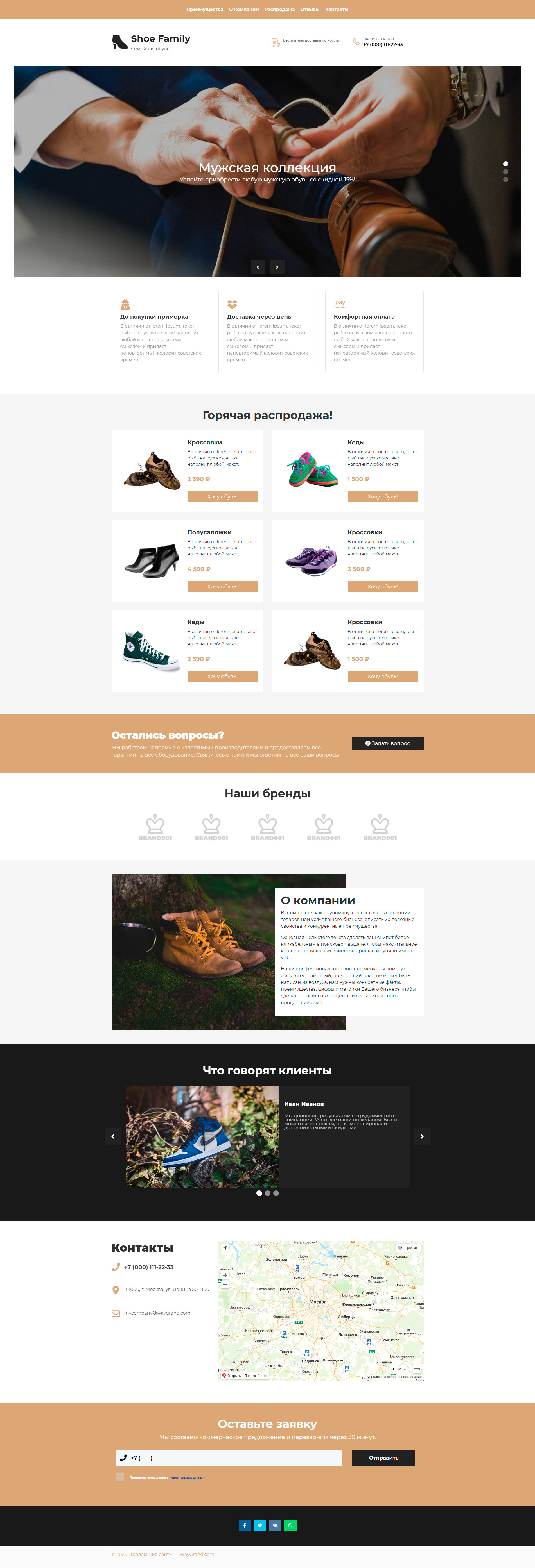 Закажите готовый продающий сайт лендинг #1517201 в Соликамске за 1-3 дня «под ключ»: свёрстан, отрисован и готов к рекламе. Тематика шаблона «Обувь».
