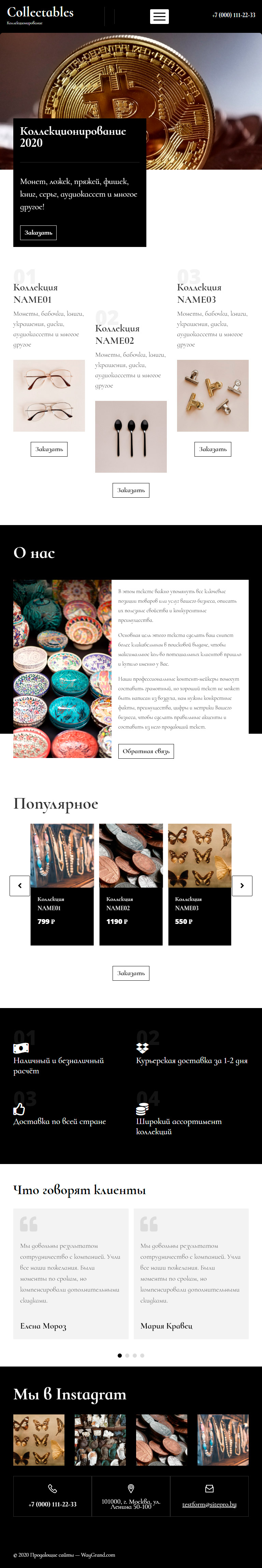 Закажите готовый продающий сайт лендинг #0801201 в Соликамске за 1-3 дня «под ключ»: свёрстан, отрисован и готов к рекламе. Тематика шаблона «Коллекционирование».