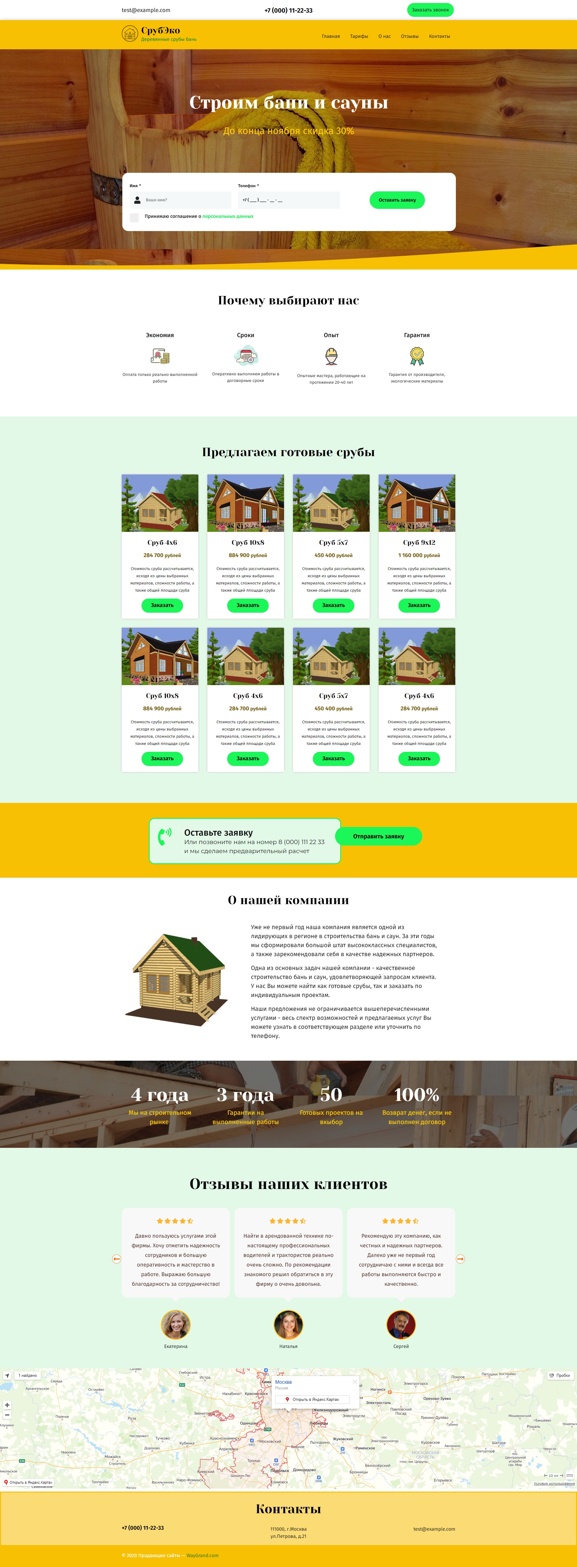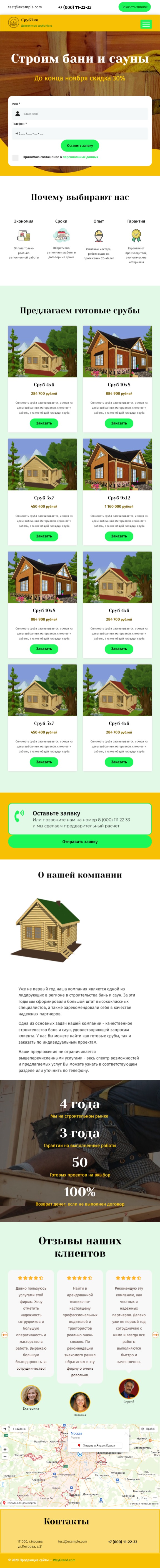 Закажите готовый продающий сайт лендинг #2172202 в Соликамске за 1-3 дня «под ключ»: свёрстан, отрисован и готов к рекламе. Тематика шаблона «Строительство бань и саун».