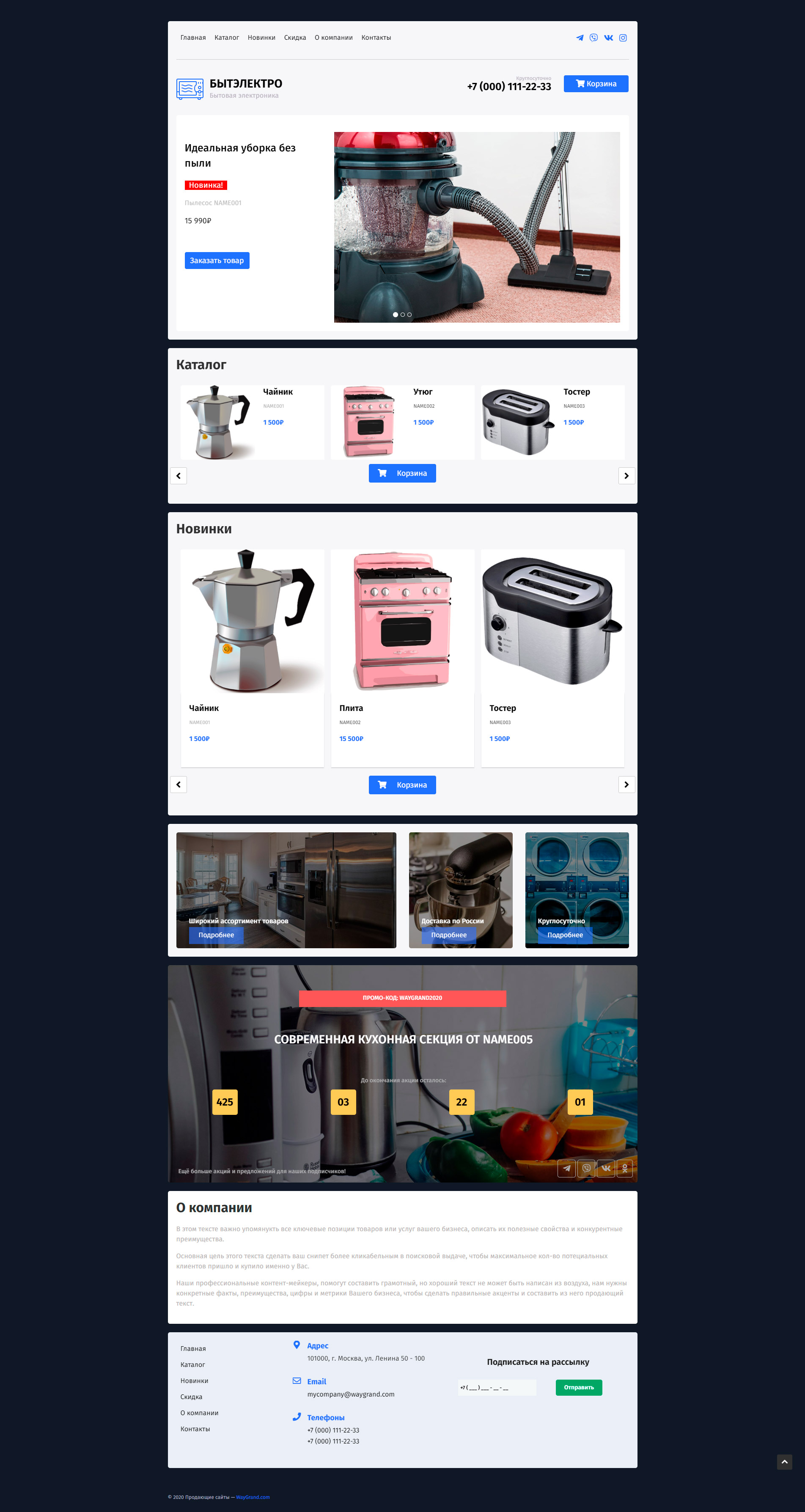 Закажите готовый продающий сайт лендинг #0703202 в Соликамске за 1-3 дня «под ключ»: свёрстан, отрисован и готов к рекламе. Тематика шаблона «Продажа бытовой электроники».