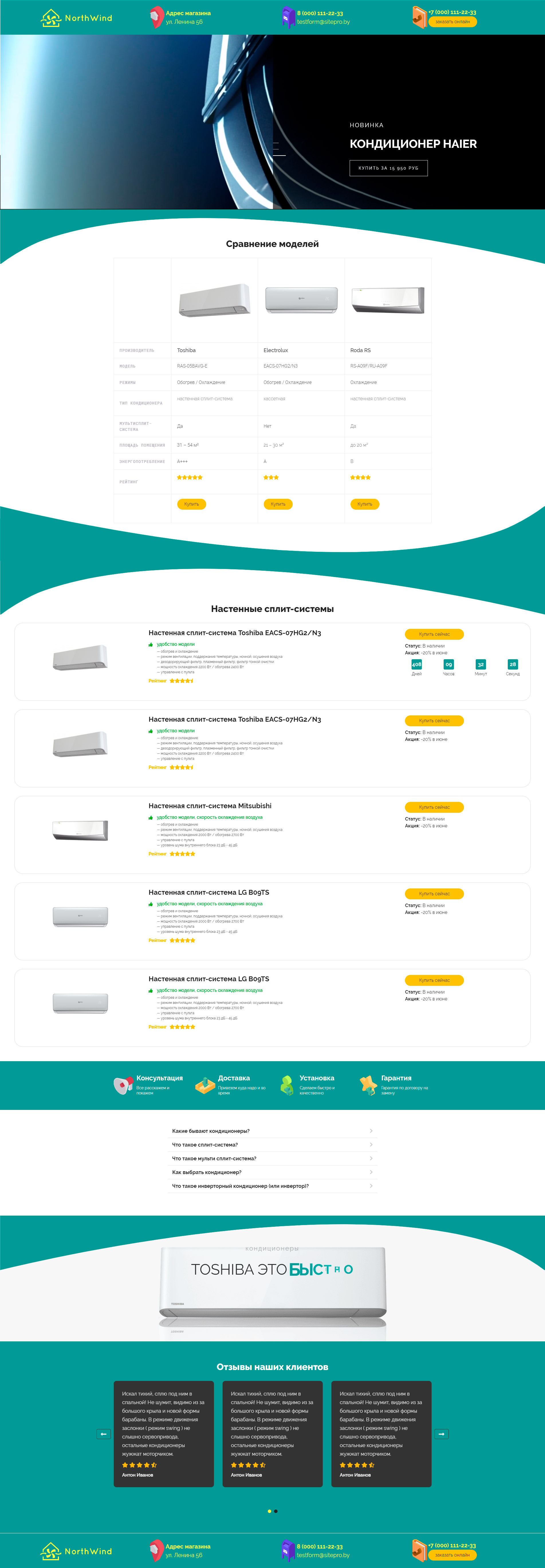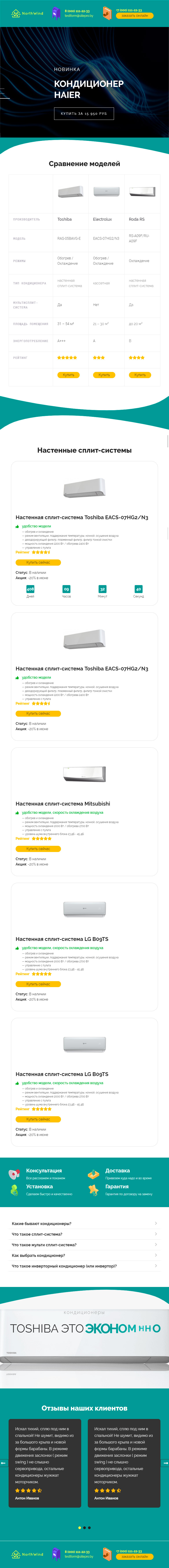 Закажите готовый продающий сайт лендинг #1323201 в Соликамске за 1-3 дня «под ключ»: свёрстан, отрисован и готов к рекламе. Тематика шаблона «Кондиционеры».