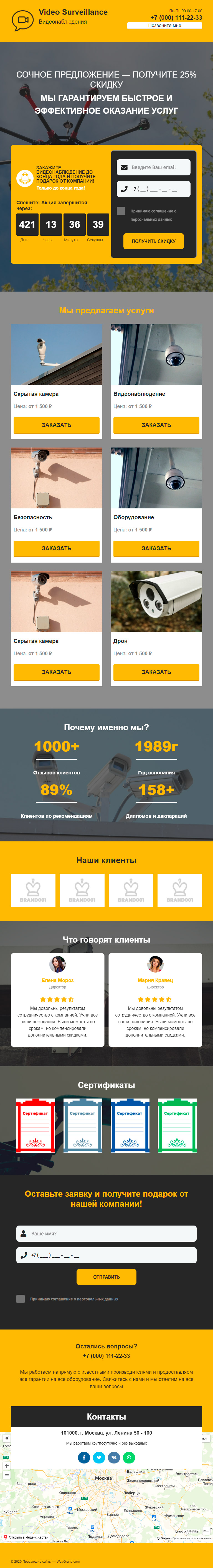 Закажите готовый продающий сайт лендинг #1609202 в Соликамске за 1-3 дня «под ключ»: свёрстан, отрисован и готов к рекламе. Тематика шаблона «Видеонаблюдение».