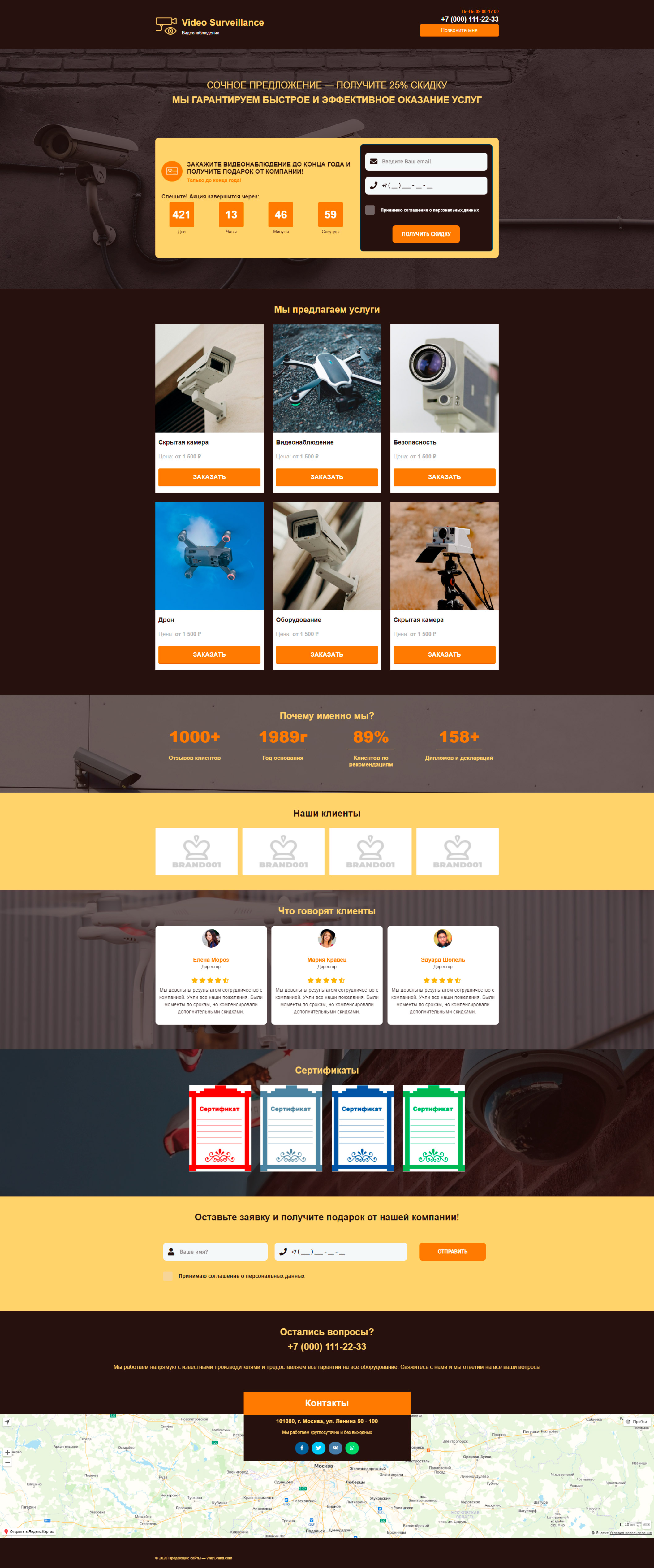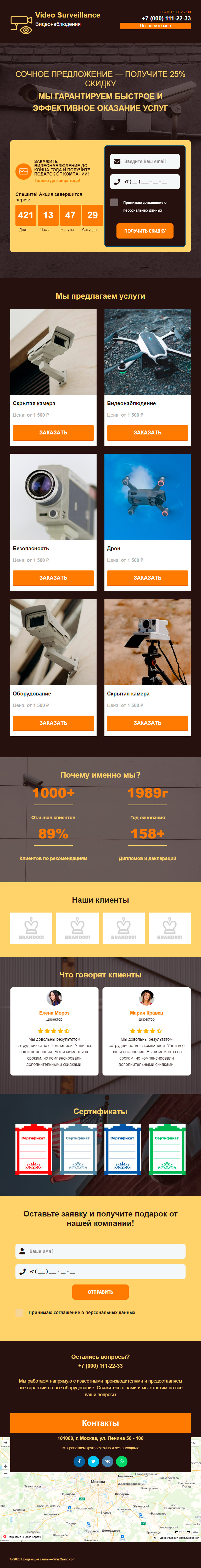 Закажите готовый продающий сайт лендинг #1609203 в Соликамске за 1-3 дня «под ключ»: свёрстан, отрисован и готов к рекламе. Тематика шаблона «Видеонаблюдение».