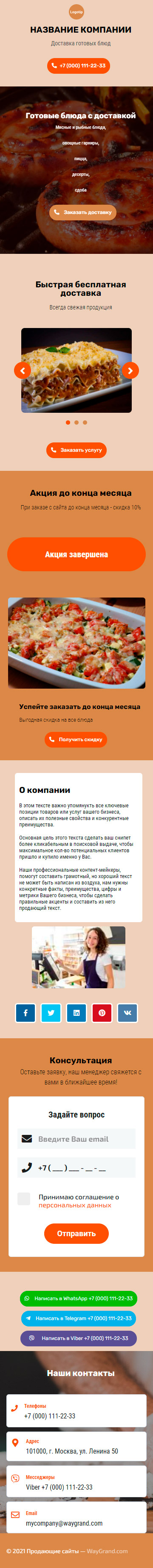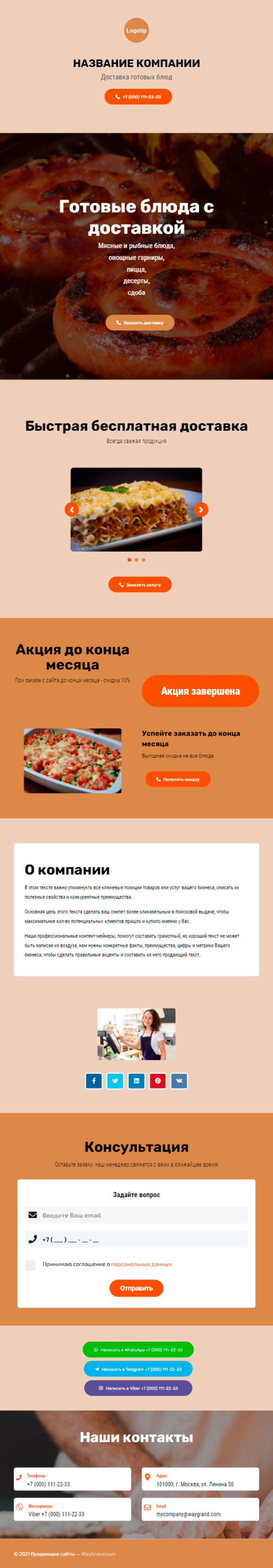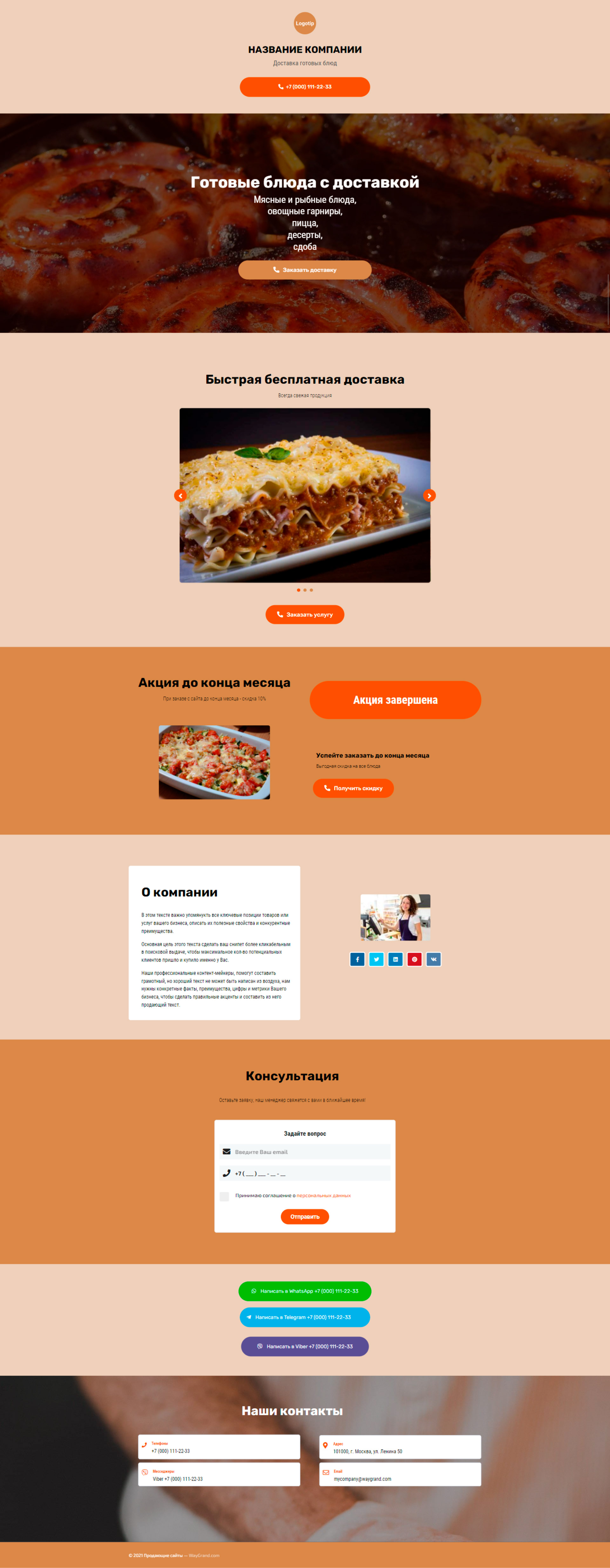 Закажите готовый продающий сайт визитка #0422101 в Соликамске за 5-7 дня «под ключ»: свёрстан, отрисован и готов к рекламе. Тематика шаблона «Готовые блюда с доставкой».