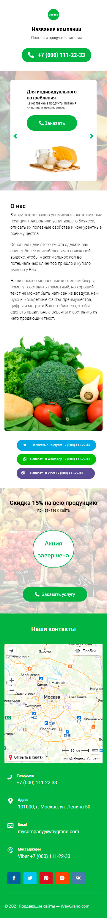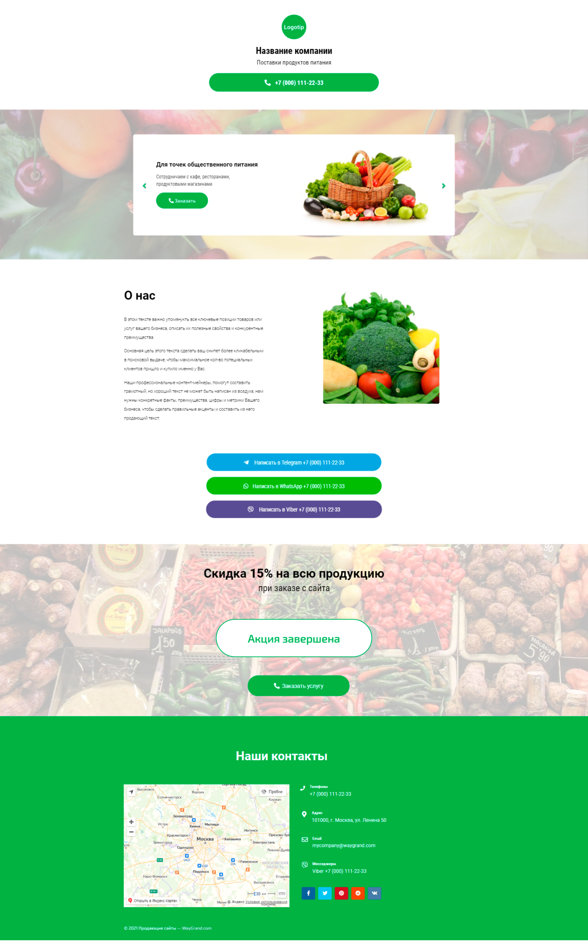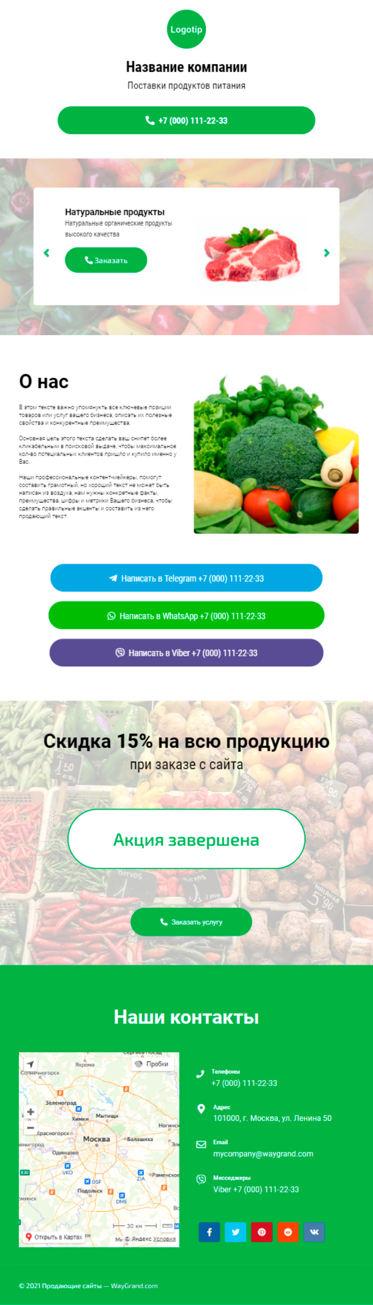 Закажите готовый продающий сайт визитка #1723101 в Соликамске за 5-7 дня «под ключ»: свёрстан, отрисован и готов к рекламе. Тематика шаблона «Поставки продуктов питания».