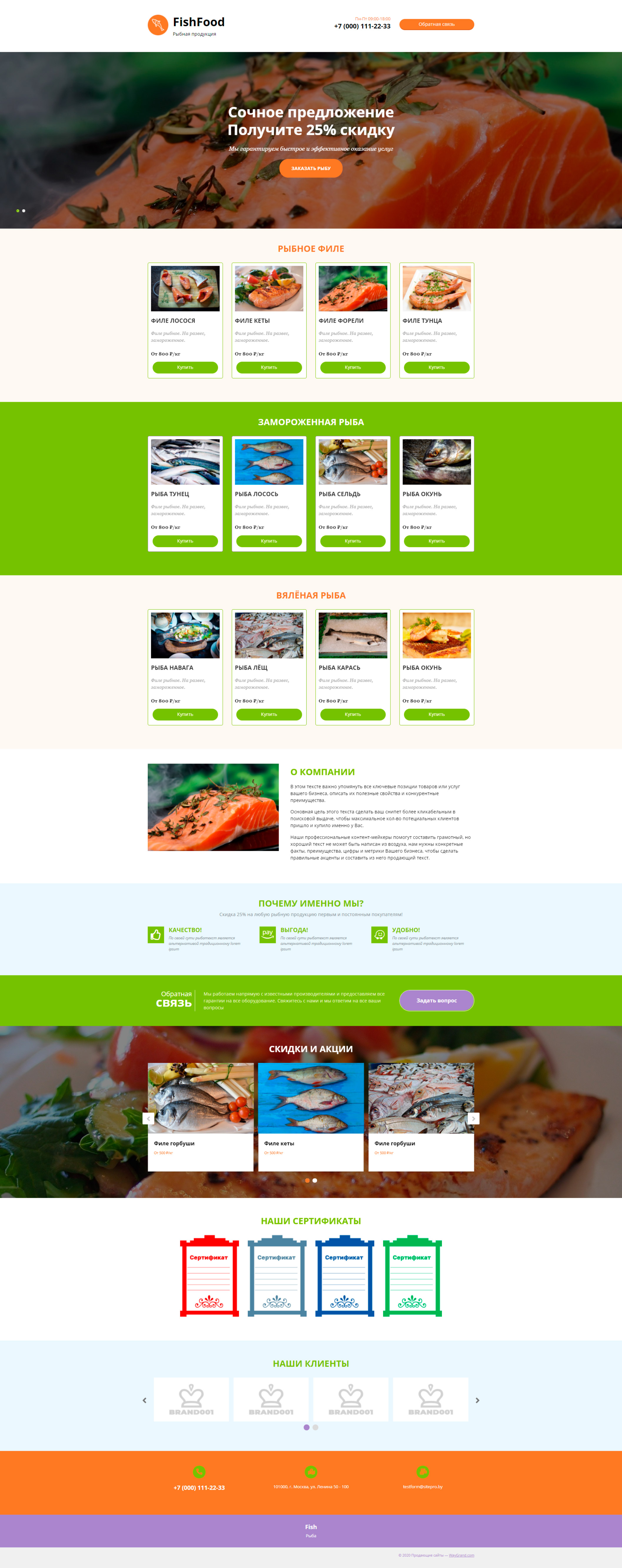 Закажите готовый продающий сайт лендинг #1731202 в Соликамске за 1-3 дня «под ключ»: свёрстан, отрисован и готов к рекламе. Тематика шаблона «Рыбная продукция».