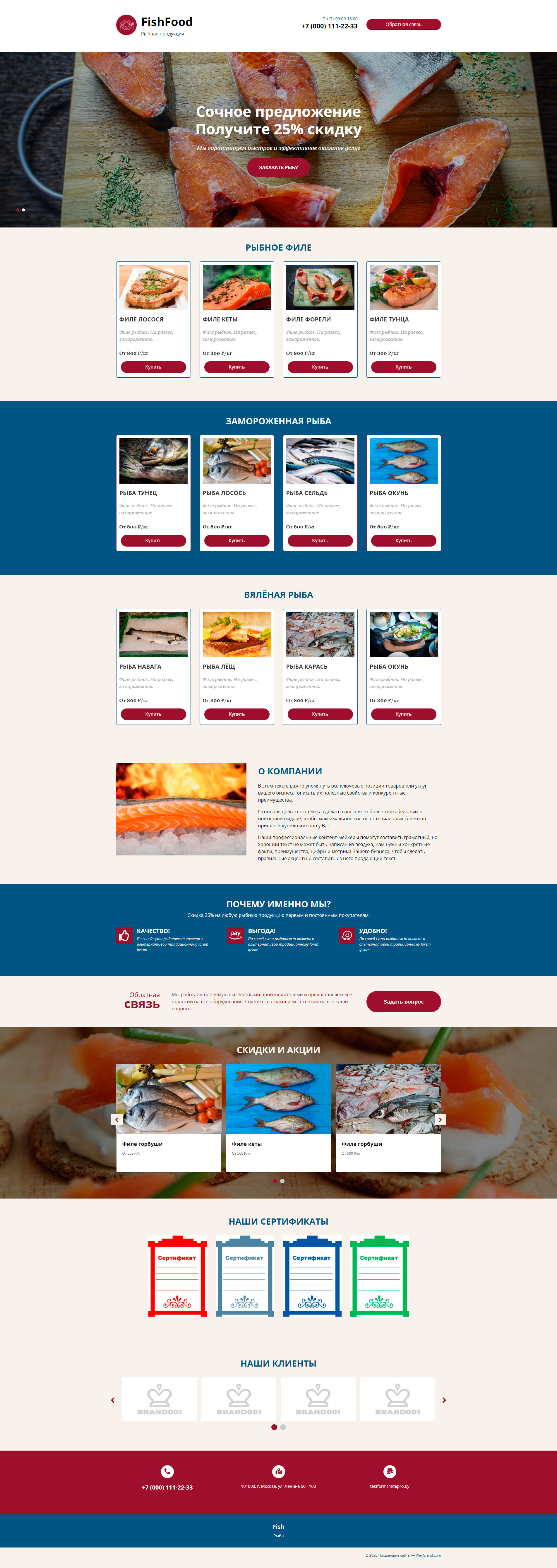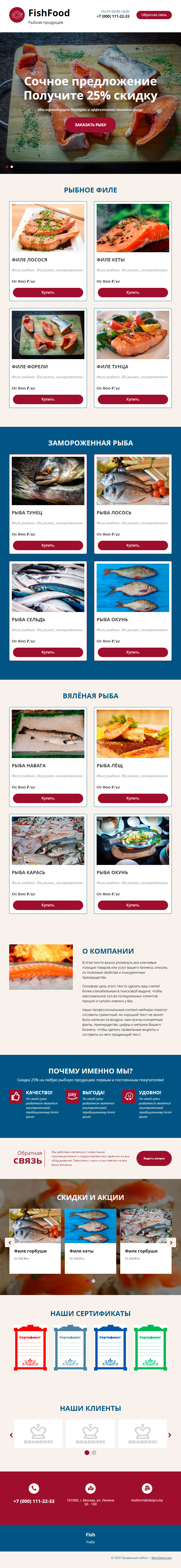 Закажите готовый продающий сайт лендинг #1731203 в Соликамске за 1-3 дня «под ключ»: свёрстан, отрисован и готов к рекламе. Тематика шаблона «Рыбная продукция».