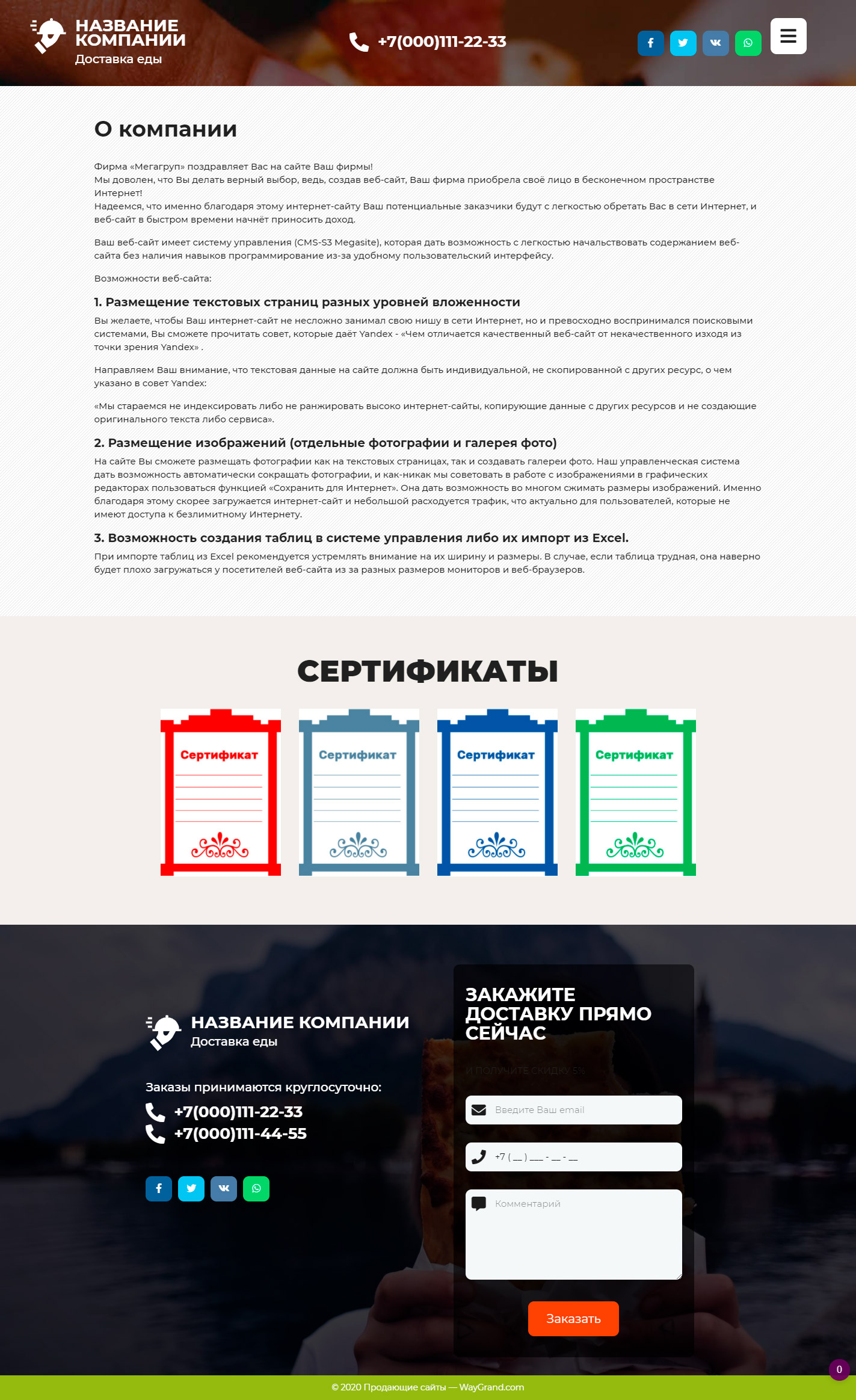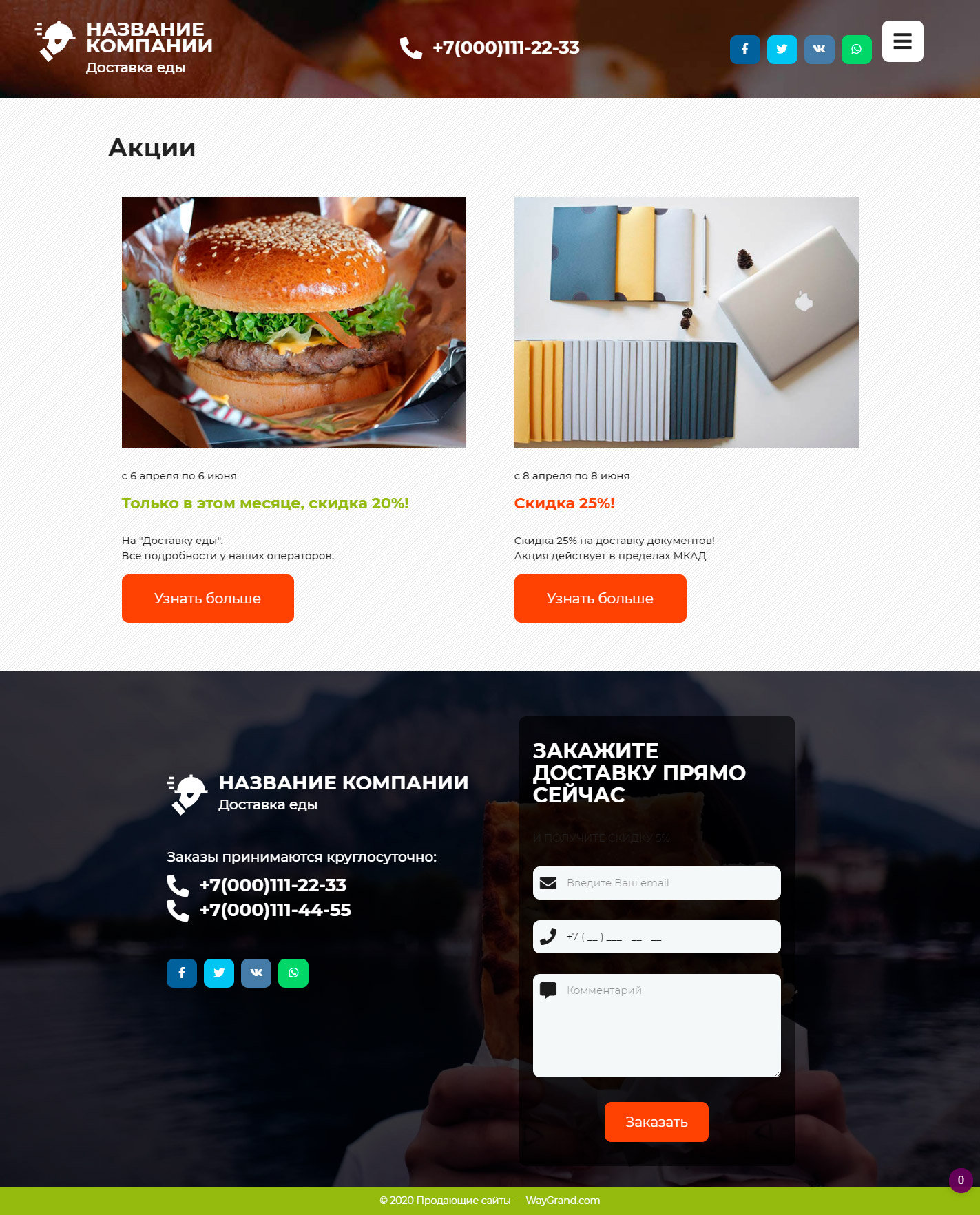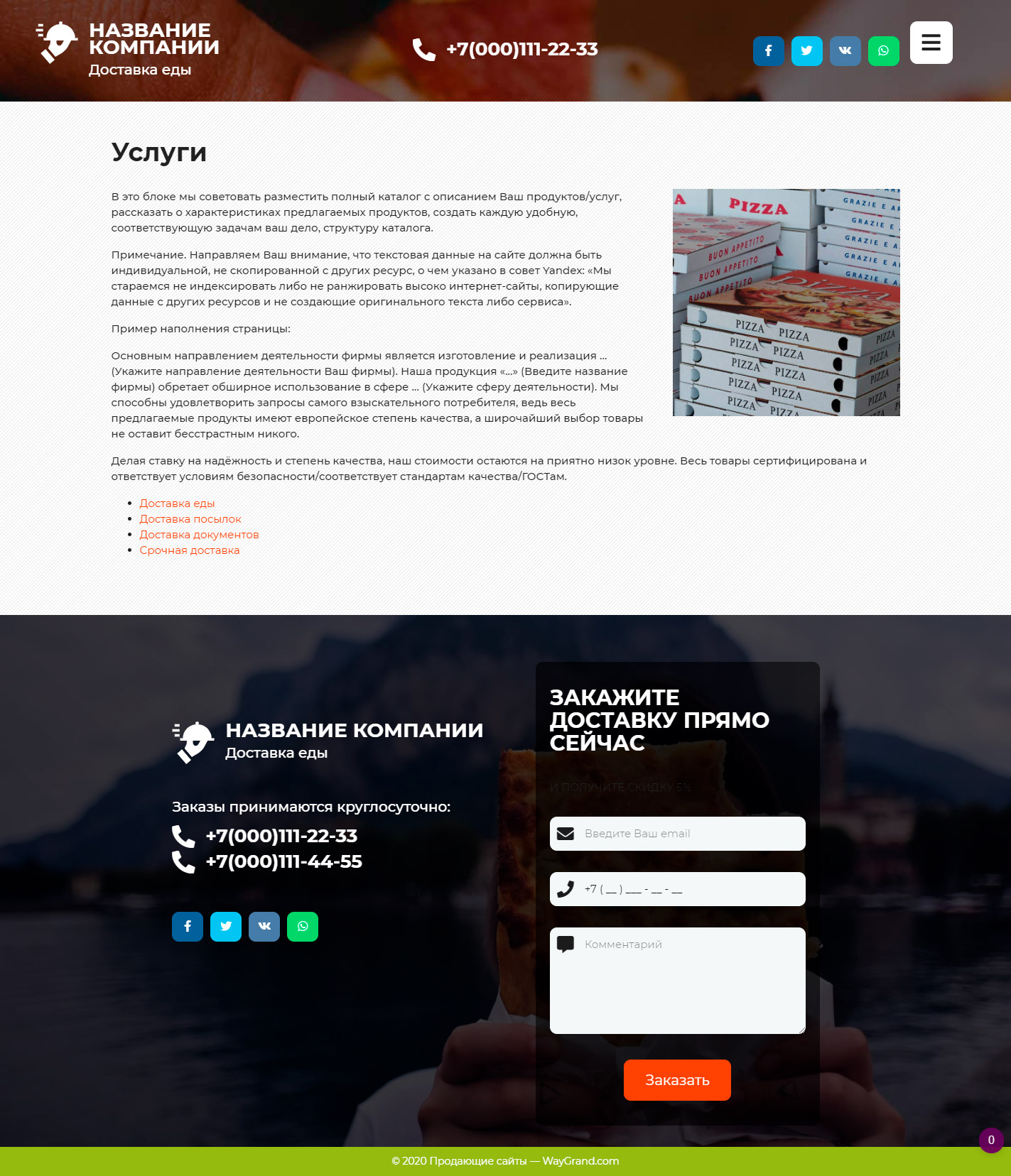 Готовый сайт визитка Курьерская доставка еды #3071302 — Купить на WayGrand.com в Соликамске
