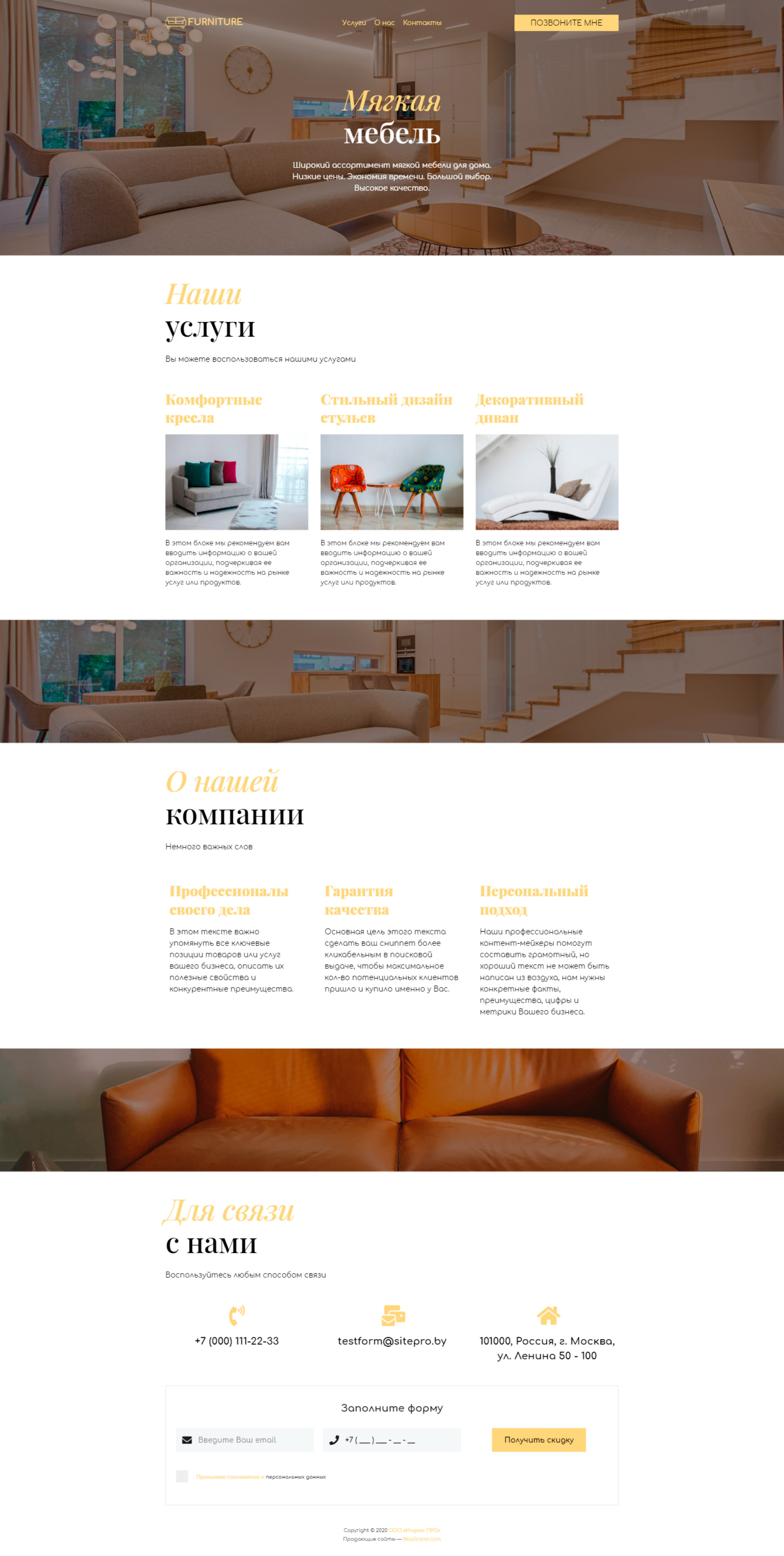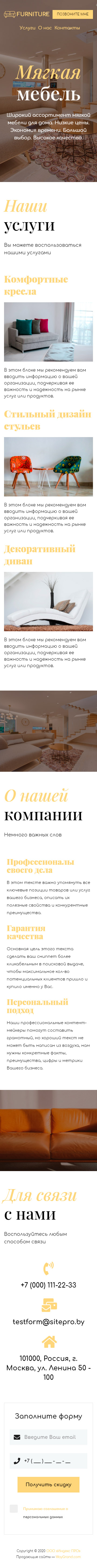Закажите готовый продающий сайт визитка #0919101 в Соликамске за 5-7 дня «под ключ»: свёрстан, отрисован и готов к рекламе. Тематика шаблона «Мягкая мебель».