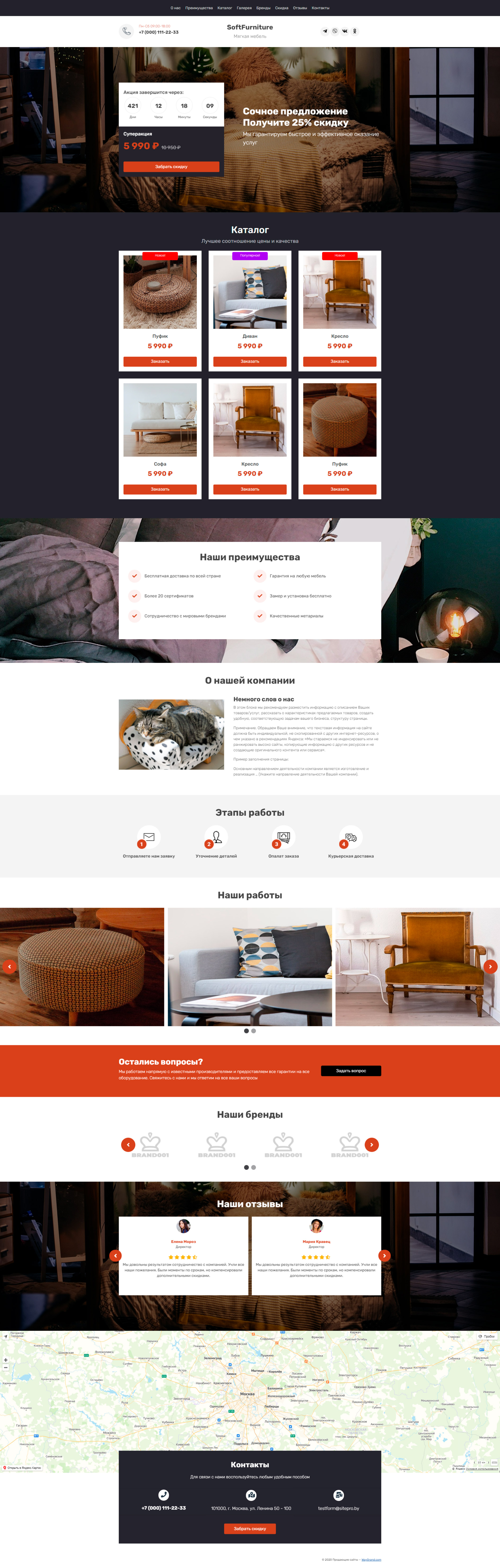 Закажите готовый продающий сайт лендинг #0919201 в Соликамске за 1-3 дня «под ключ»: свёрстан, отрисован и готов к рекламе. Тематика шаблона «Мягкая мебель».