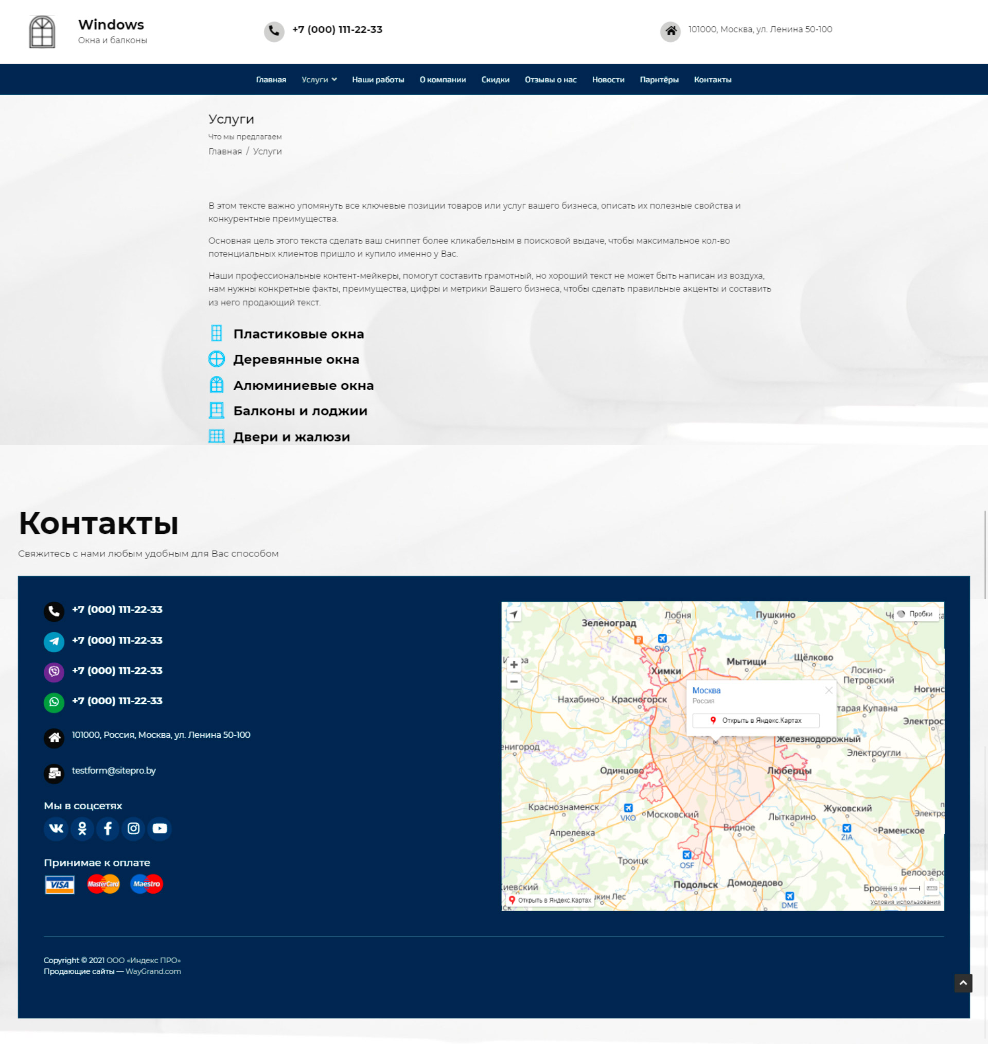 Закажите готовый продающий сайт визитка #2034302 в Соликамске за 5-7 дня «под ключ»: свёрстан, отрисован и готов к рекламе. Тематика шаблона «Окна и балконы».