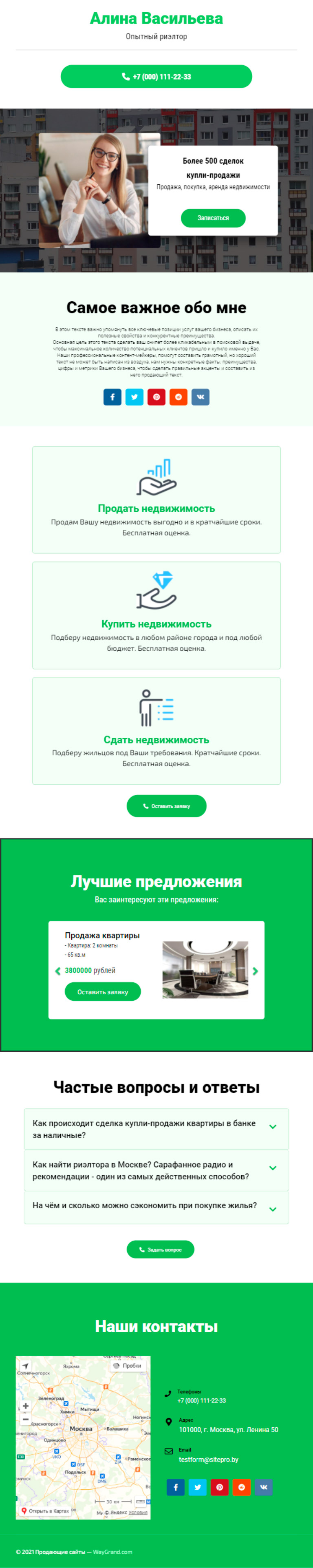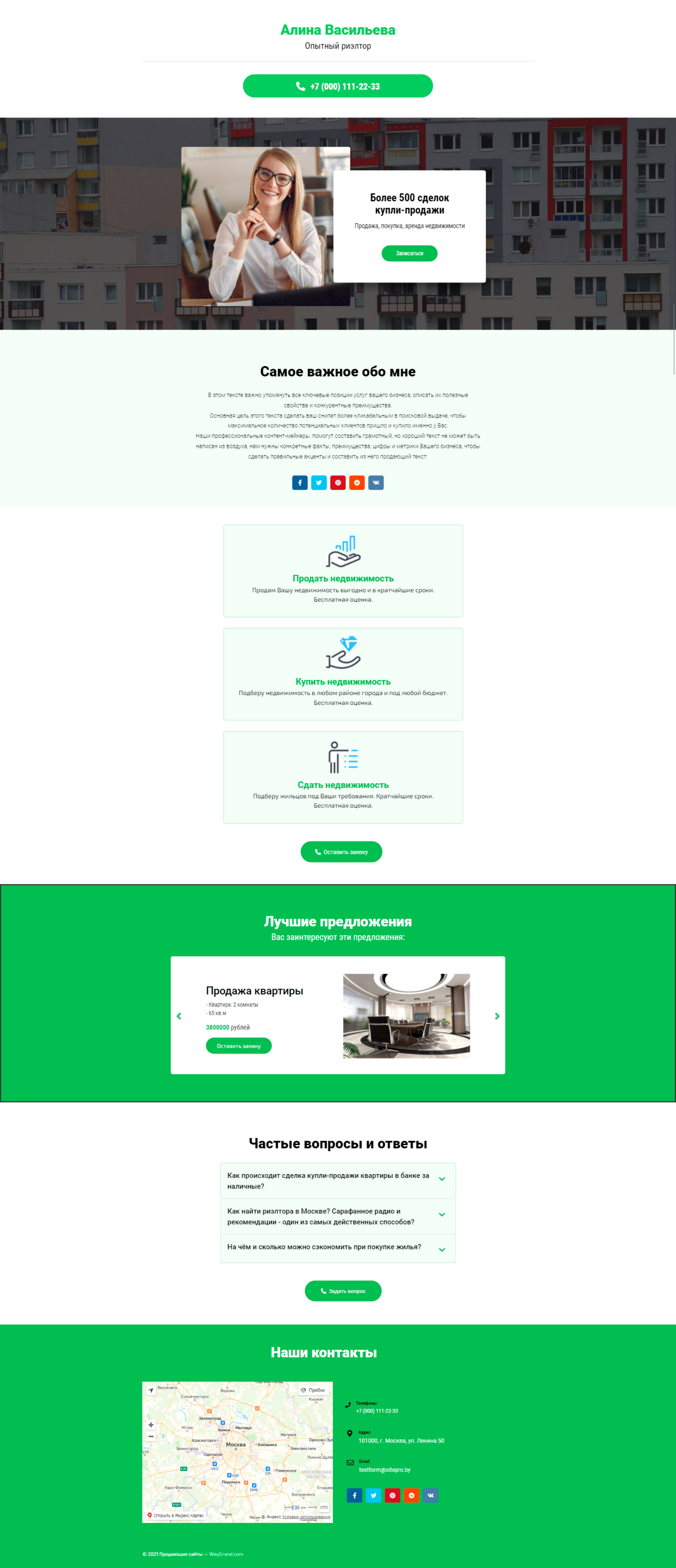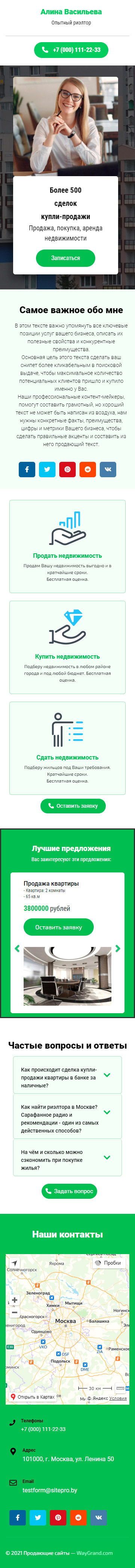 Закажите готовый продающий сайт визитка #2102101 в Соликамске за 5-7 дня «под ключ»: свёрстан, отрисован и готов к рекламе. Тематика шаблона «Опытный риэлтор».