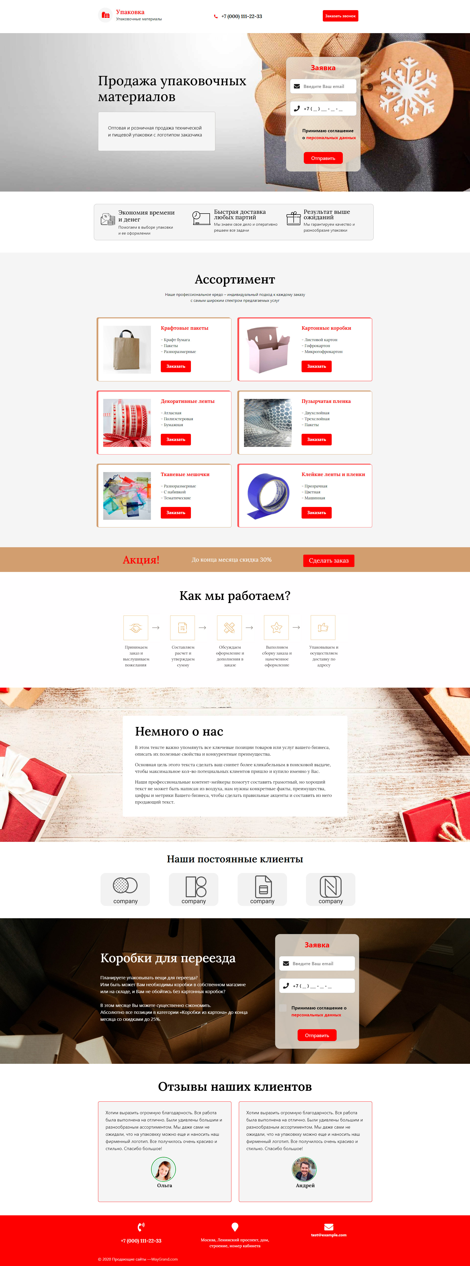 Закажите готовый продающий сайт лендинг #2627201 в Соликамске за 1-3 дня «под ключ»: свёрстан, отрисован и готов к рекламе. Тематика шаблона «Продажа упаковочных материалов».