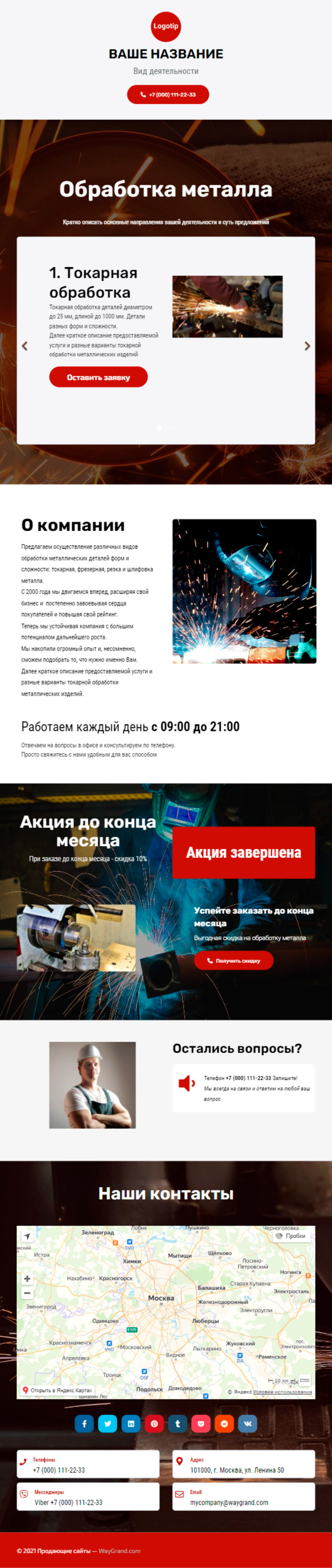 Закажите готовый продающий сайт визитка #1209101 в Соликамске за 5-7 дня «под ключ»: свёрстан, отрисован и готов к рекламе. Тематика шаблона «Обработка металла».