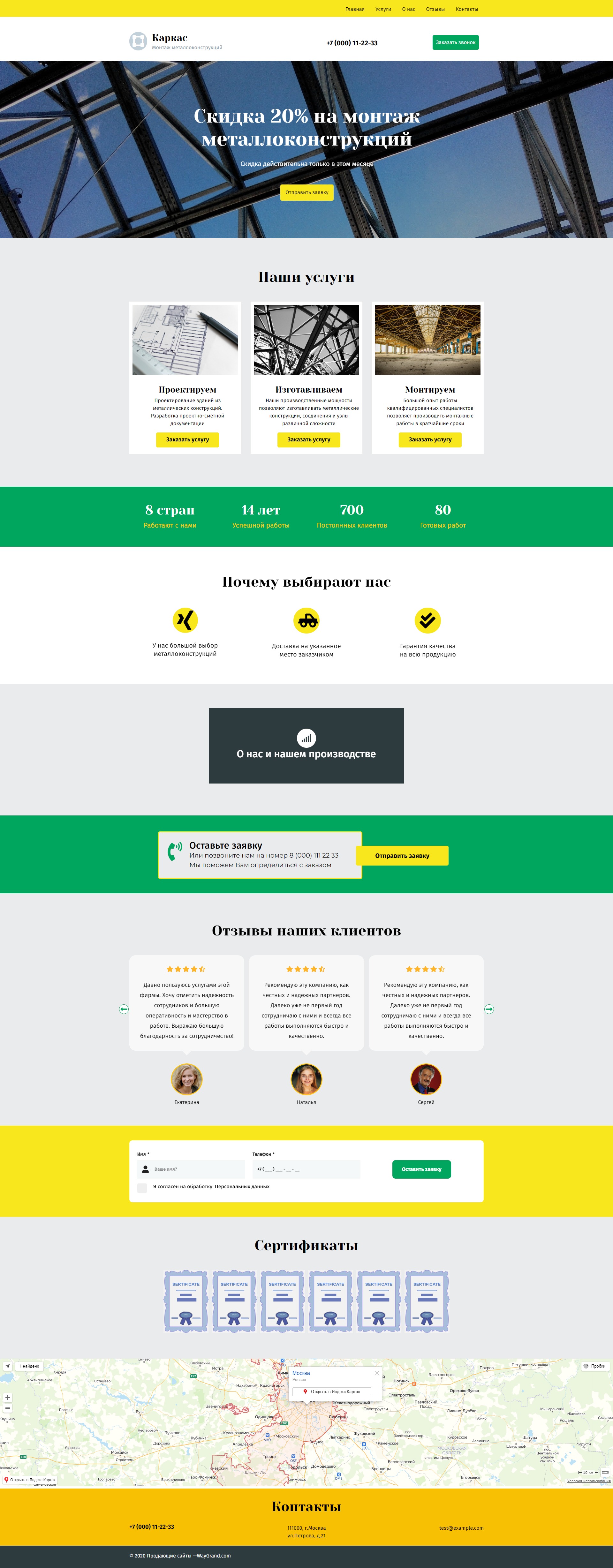 Закажите готовый продающий сайт лендинг #2027201 в Соликамске за 1-3 дня «под ключ»: свёрстан, отрисован и готов к рекламе. Тематика шаблона «Металлоконструкции».