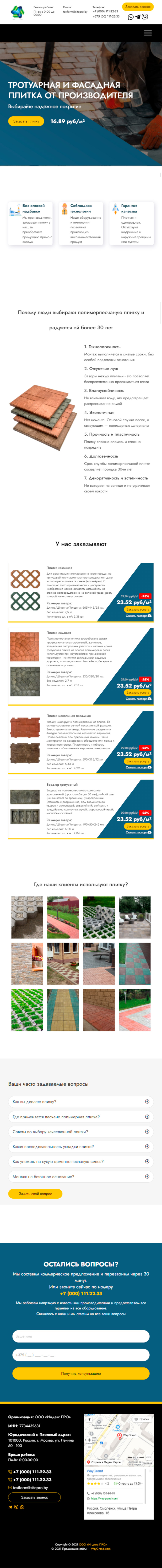 Закажите готовый продающий сайт лендинг #2055202 в Соликамске за 1-3 дня «под ключ»: свёрстан, отрисован и готов к рекламе. Тематика шаблона «Тротуарная плитка».