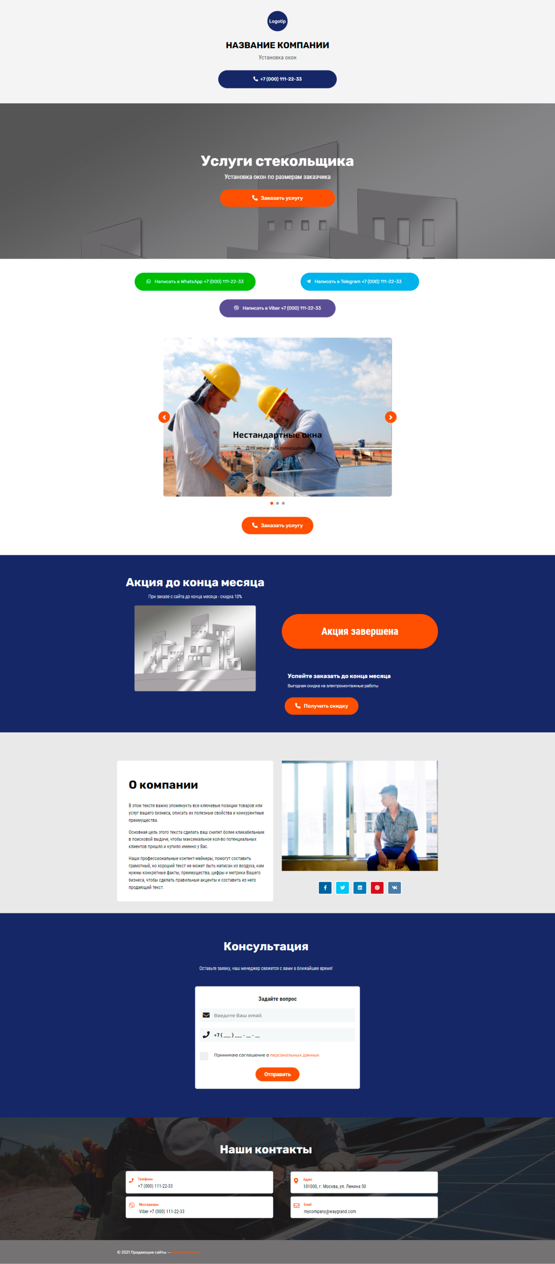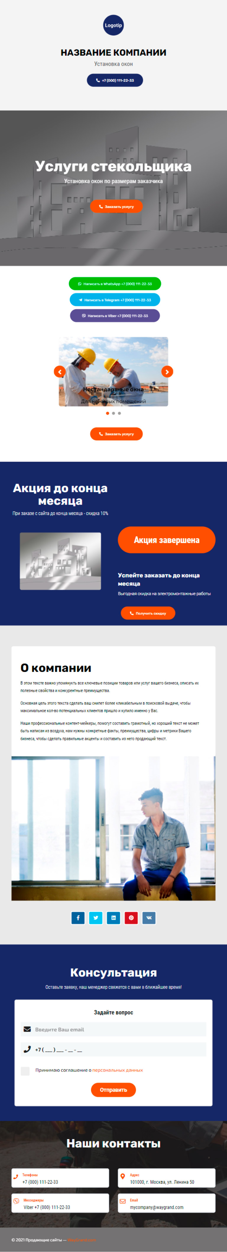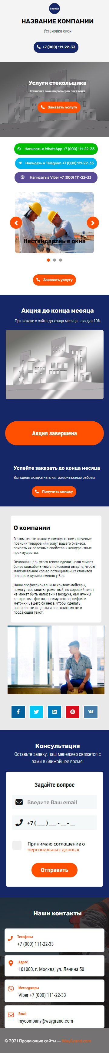 Закажите готовый продающий сайт визитка #2138101 в Соликамске за 5-7 дня «под ключ»: свёрстан, отрисован и готов к рекламе. Тематика шаблона «Установка окон».