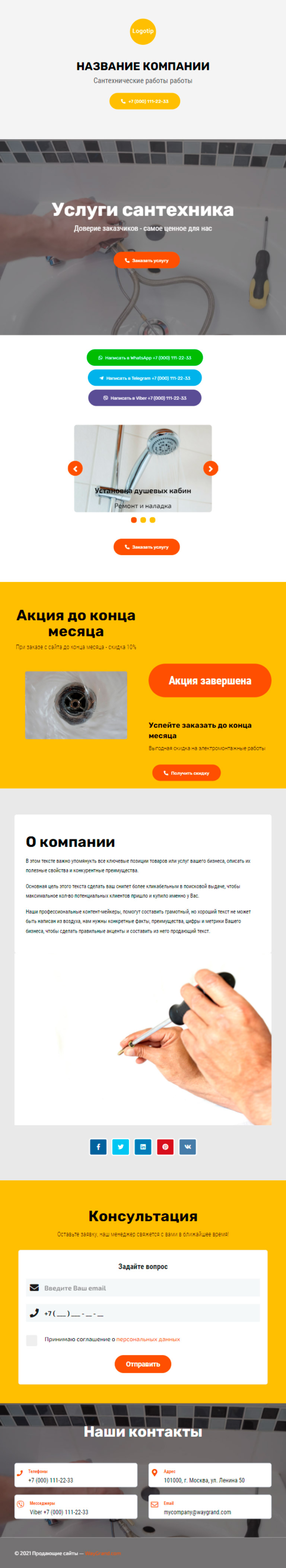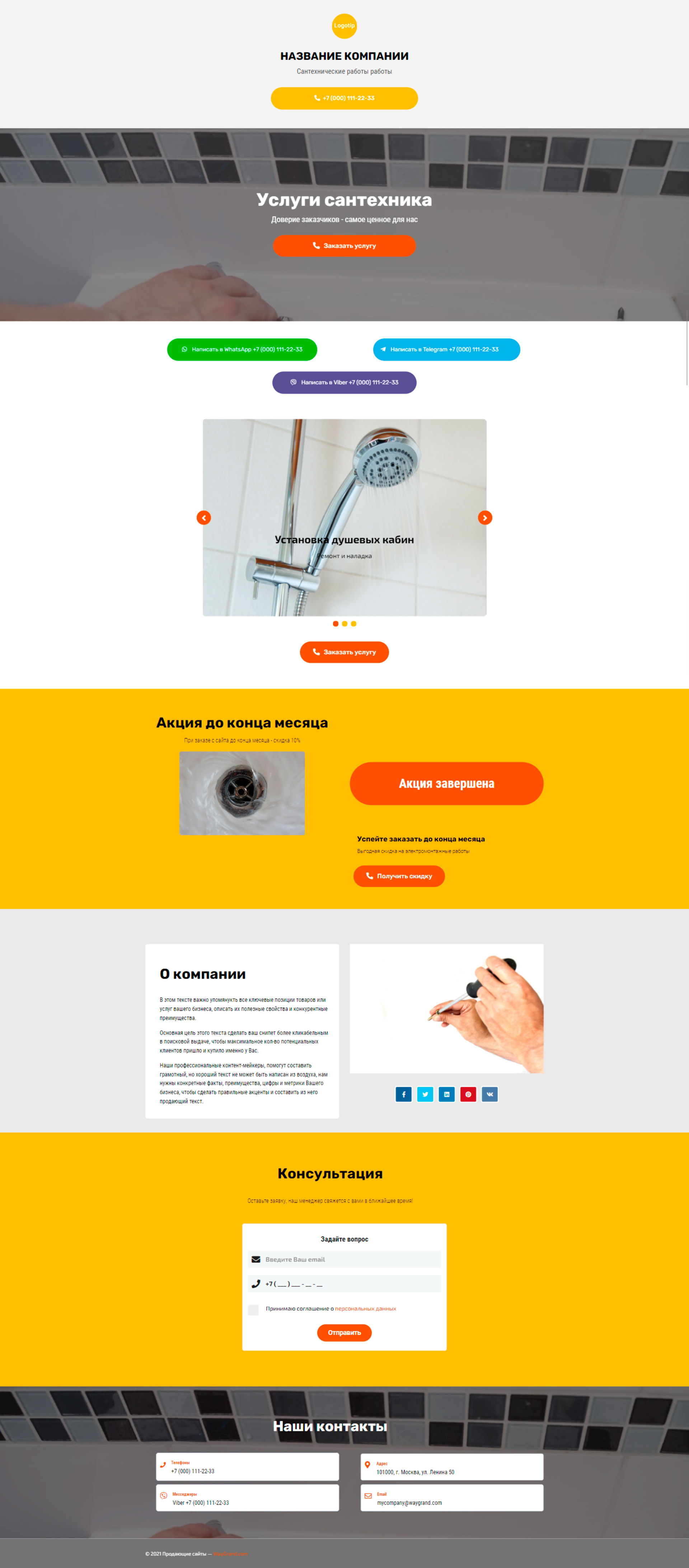 Закажите готовый продающий сайт визитка #2154101 в Соликамске за 5-7 дня «под ключ»: свёрстан, отрисован и готов к рекламе. Тематика шаблона «Сантехнические работы».