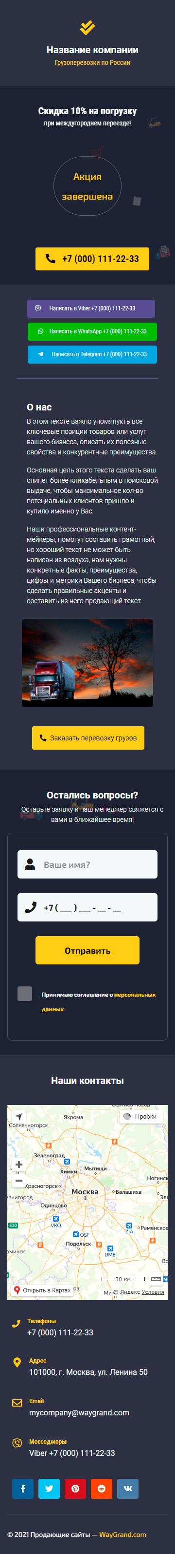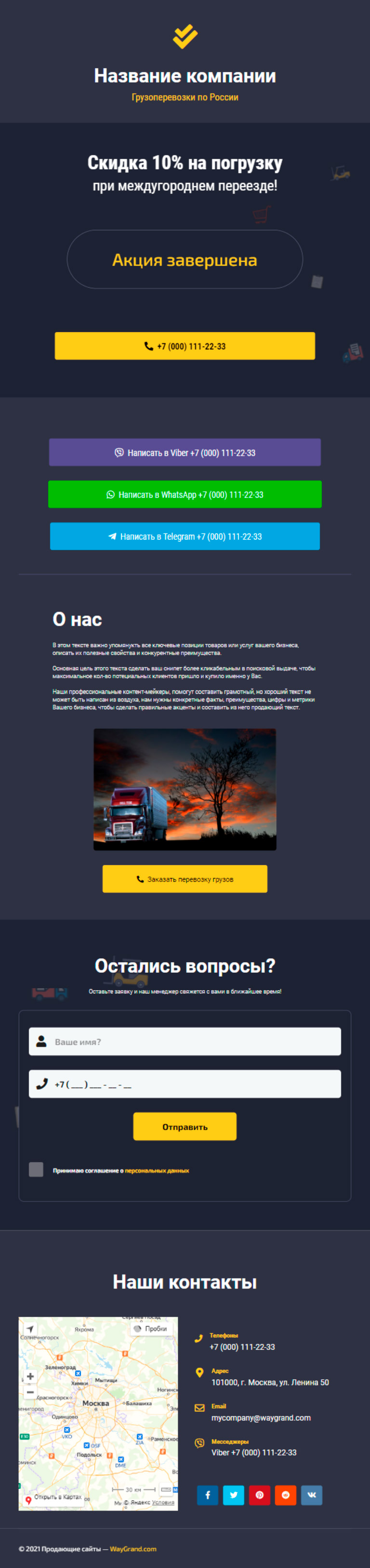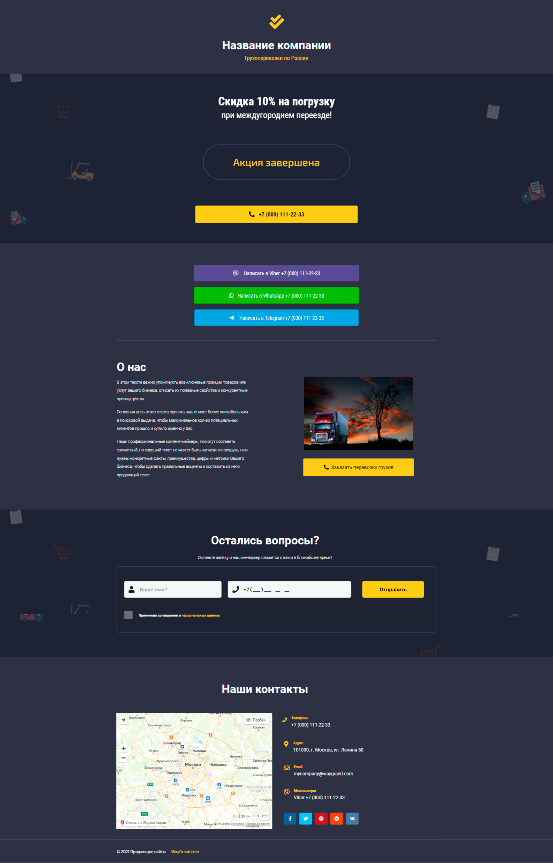 Закажите готовый продающий сайт визитка #2515101 в Соликамске за 5-7 дня «под ключ»: свёрстан, отрисован и готов к рекламе. Тематика шаблона «Грузоперевозки по России».
