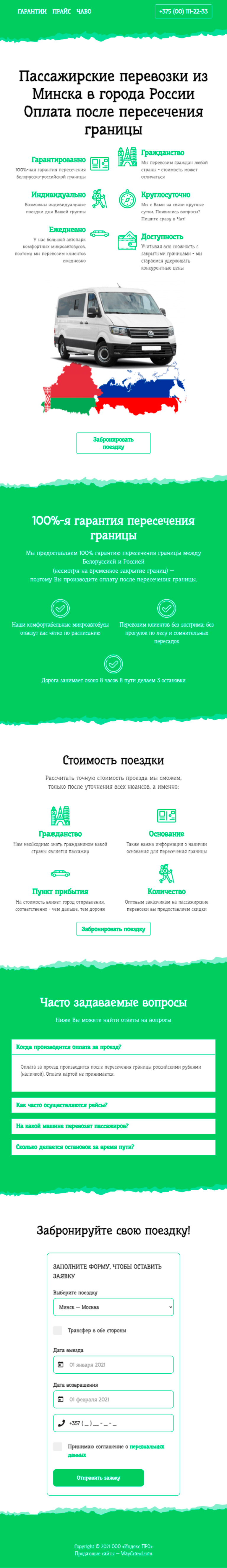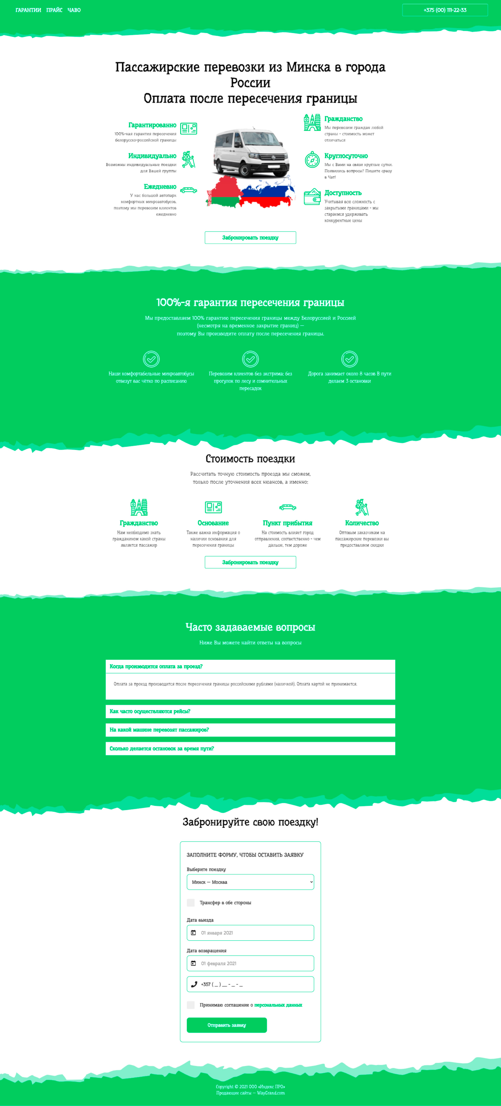 Закажите готовый продающий сайт лендинг #2528202 в Соликамске за 1-3 дня «под ключ»: свёрстан, отрисован и готов к рекламе. Тематика шаблона «Пассажирские перевозки из Минска в города России».