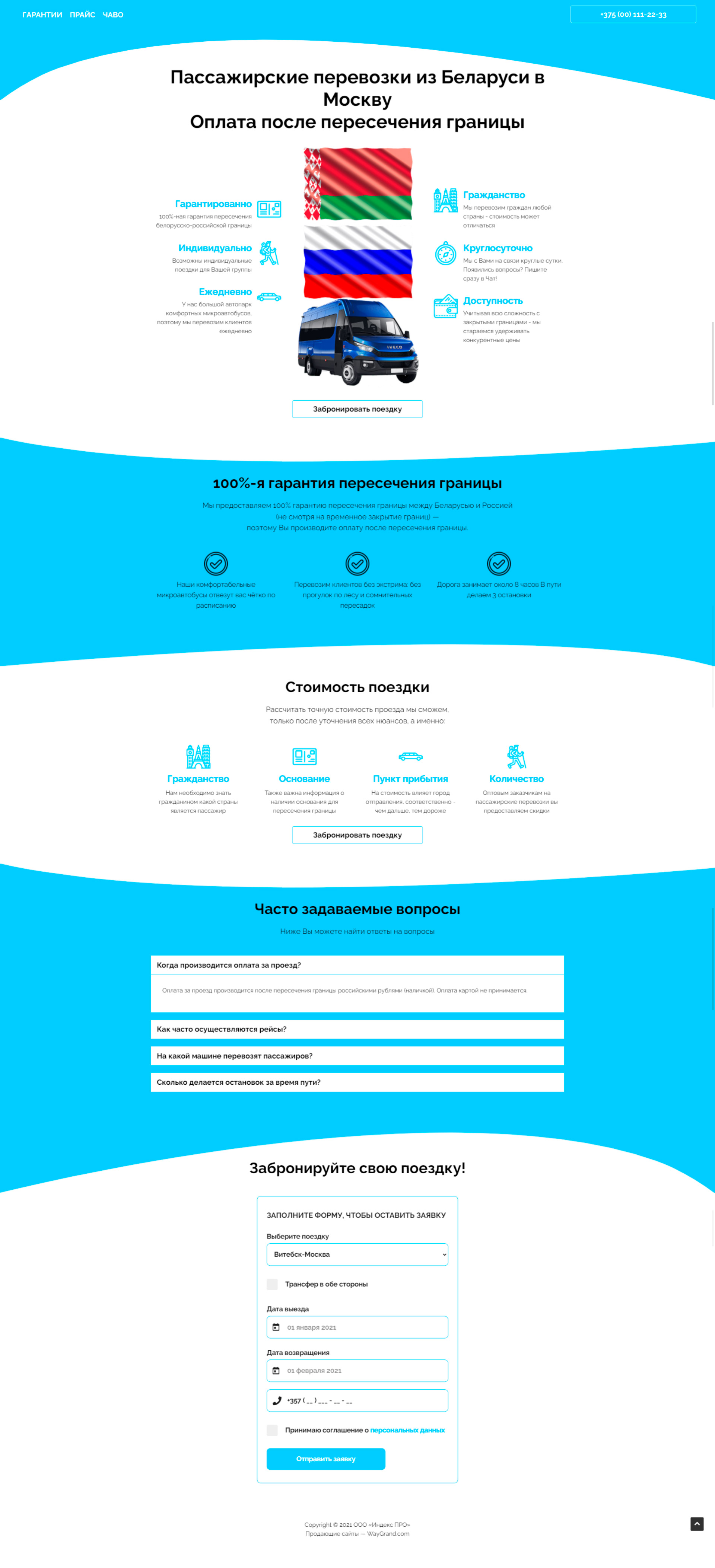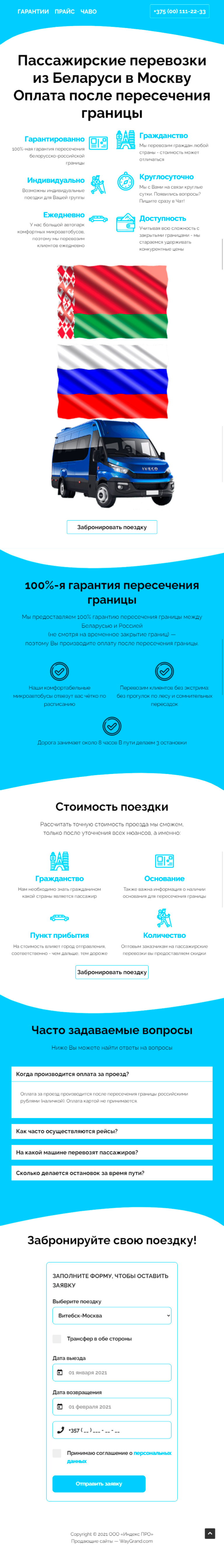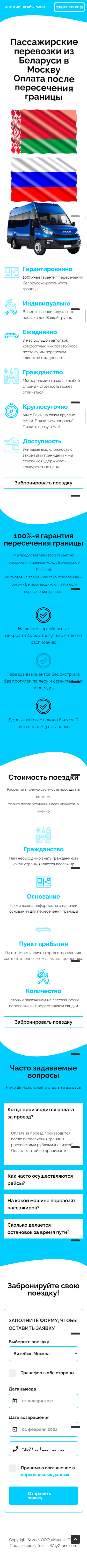 Закажите готовый продающий сайт лендинг #2528204 в Соликамске за 1-3 дня «под ключ»: свёрстан, отрисован и готов к рекламе. Тематика шаблона «Пассажирские перевозки из Беларуси в Москву».