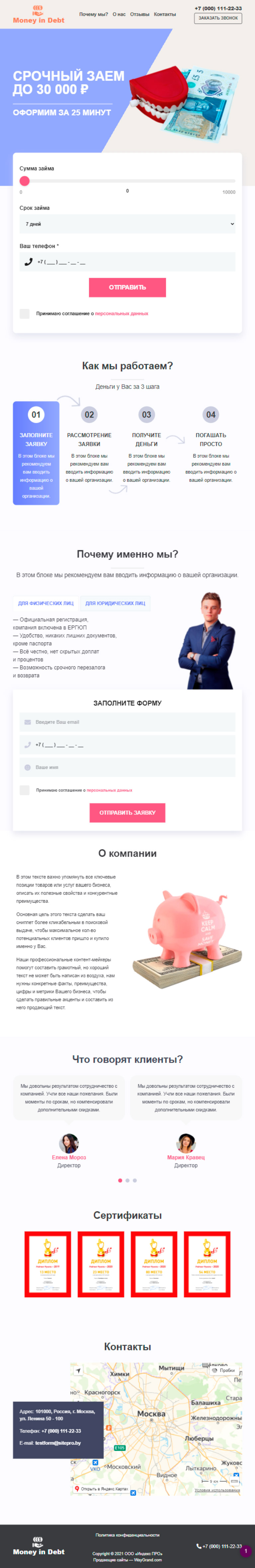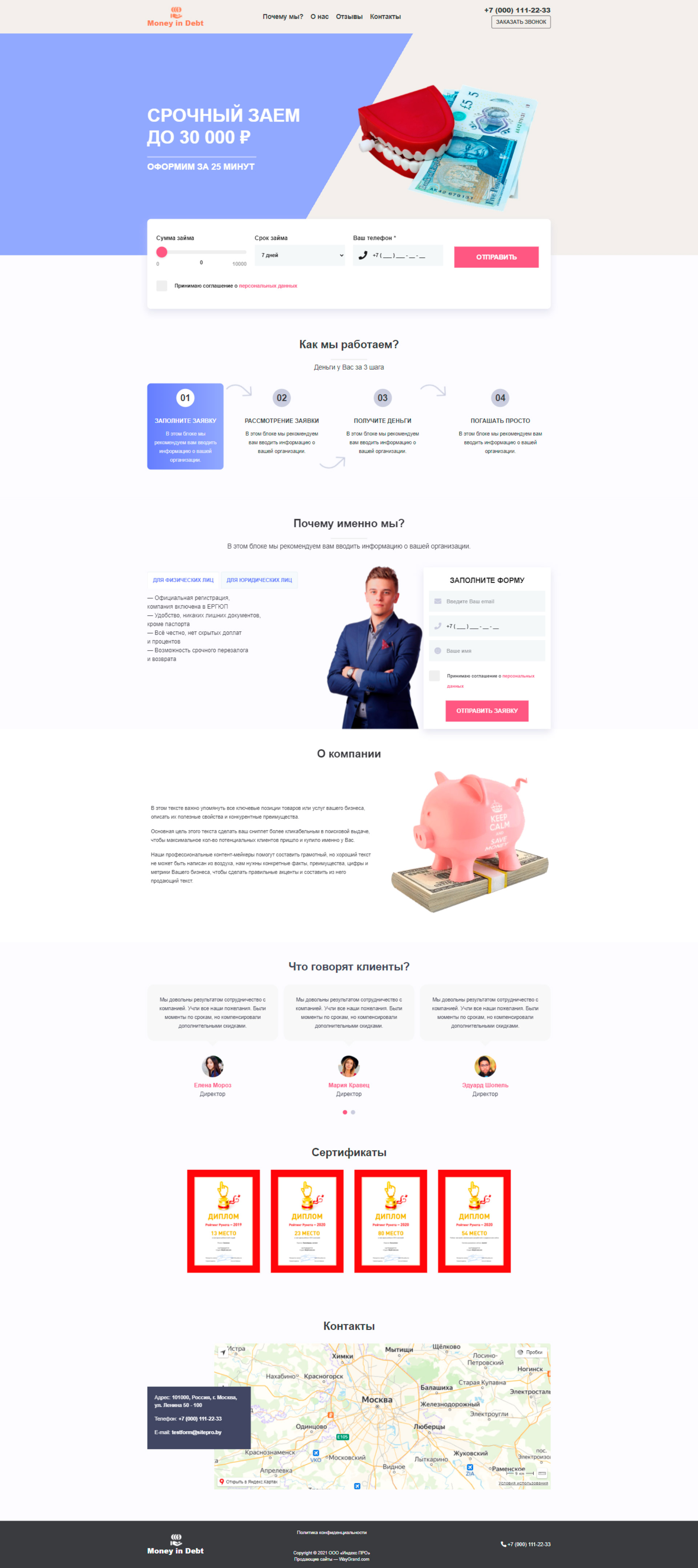 Закажите готовый продающий сайт лендинг #2825202 в Соликамске за 1-3 дня «под ключ»: свёрстан, отрисован и готов к рекламе. Тематика шаблона «Деньги в долг».