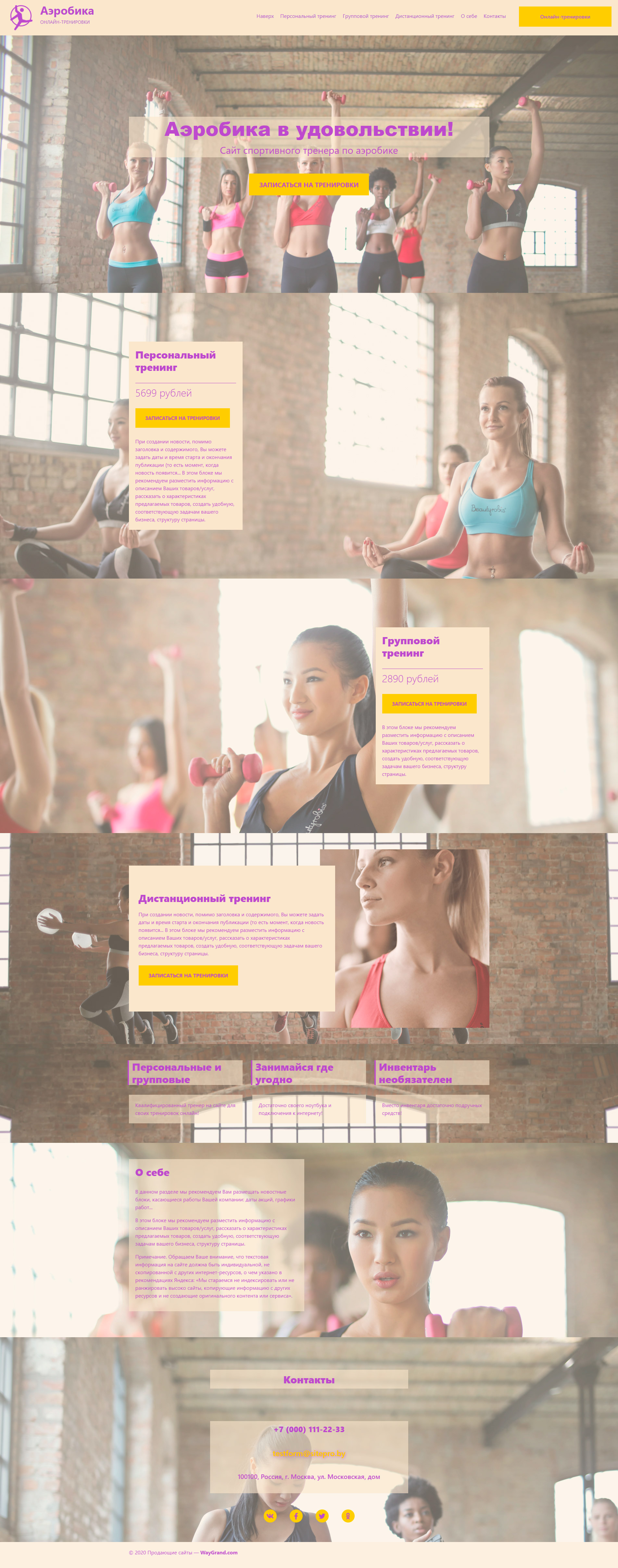 Закажите готовый продающий сайт лендинг #1955207 в Соликамске за 1-3 дня «под ключ»: свёрстан, отрисован и готов к рекламе. Тематика шаблона «Аэробика онлайн тренировки».