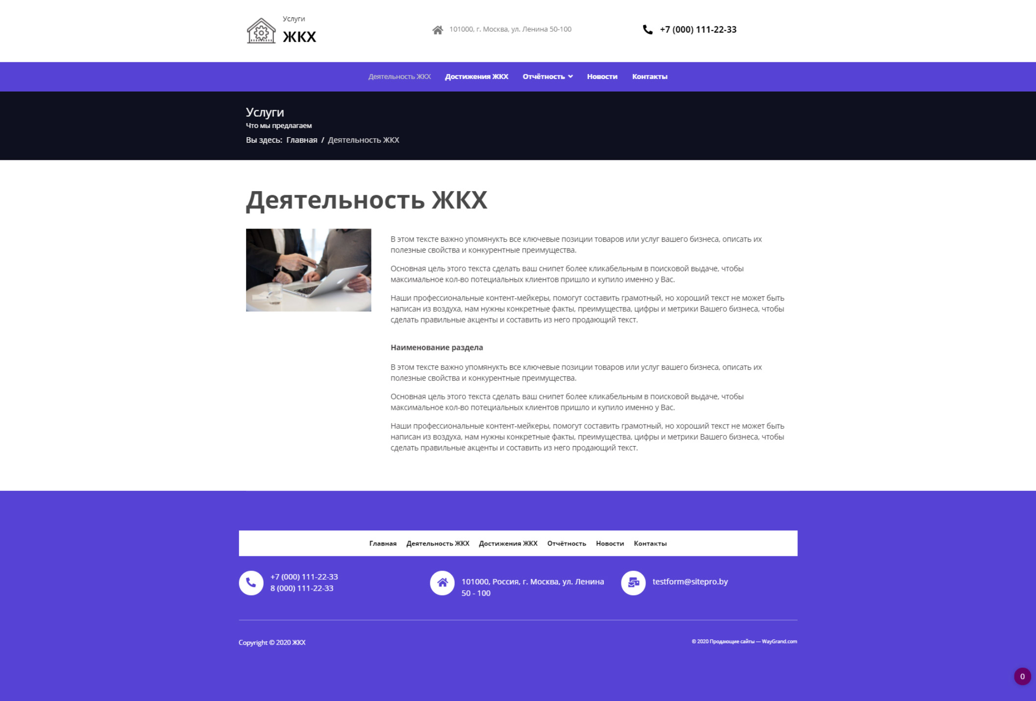 <p>Закажите готовый продающий сайт визитка #0612301 в Соликамске за 5-7 дня «под ключ»: свёрстан, отрисован и готов к рекламе. Тематика шаблона «ЖКХ».</p>