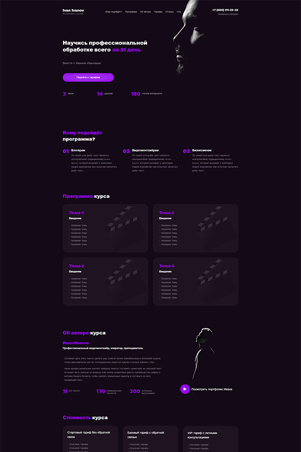 Для курса видеомонтажа #1467204 - Лендинг