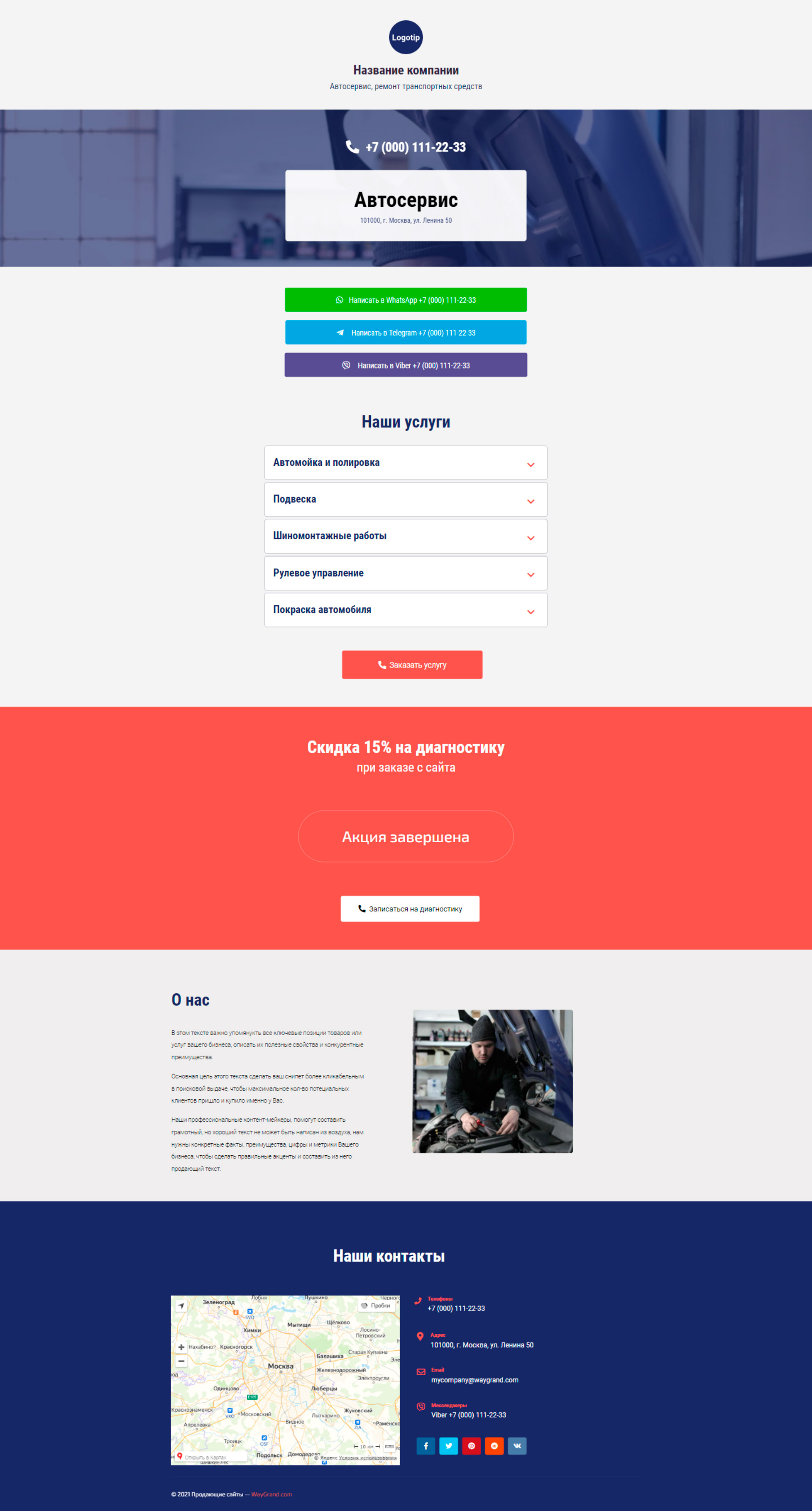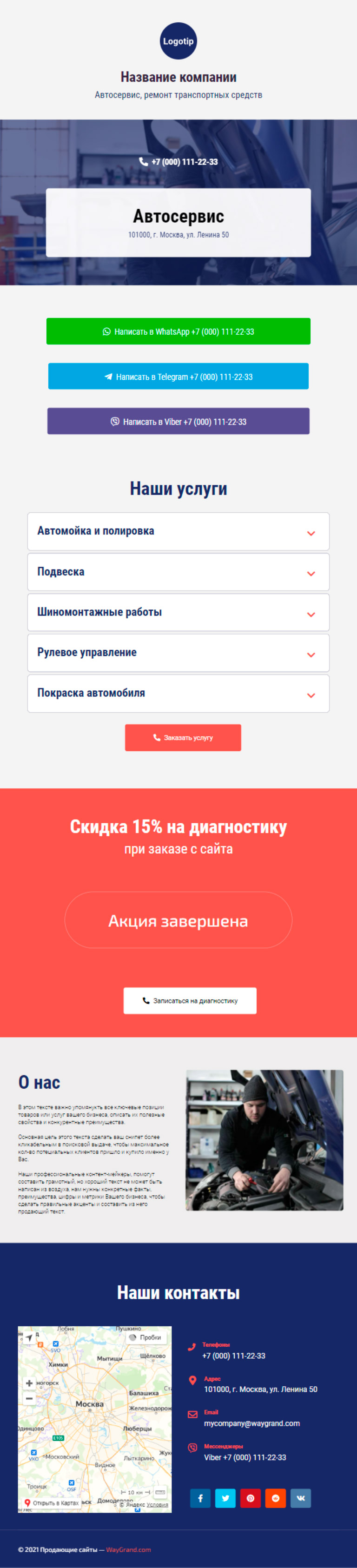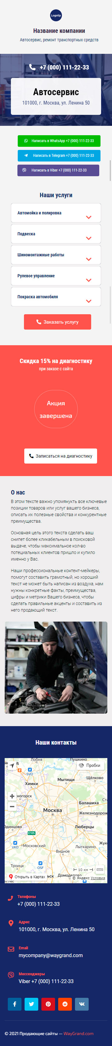Закажите готовый продающий сайт визитка #0210101 в Соликамске за 5-7 дня «под ключ»: свёрстан, отрисован и готов к рекламе. Тематика шаблона «Автосервис, ремонт транспортных средств».