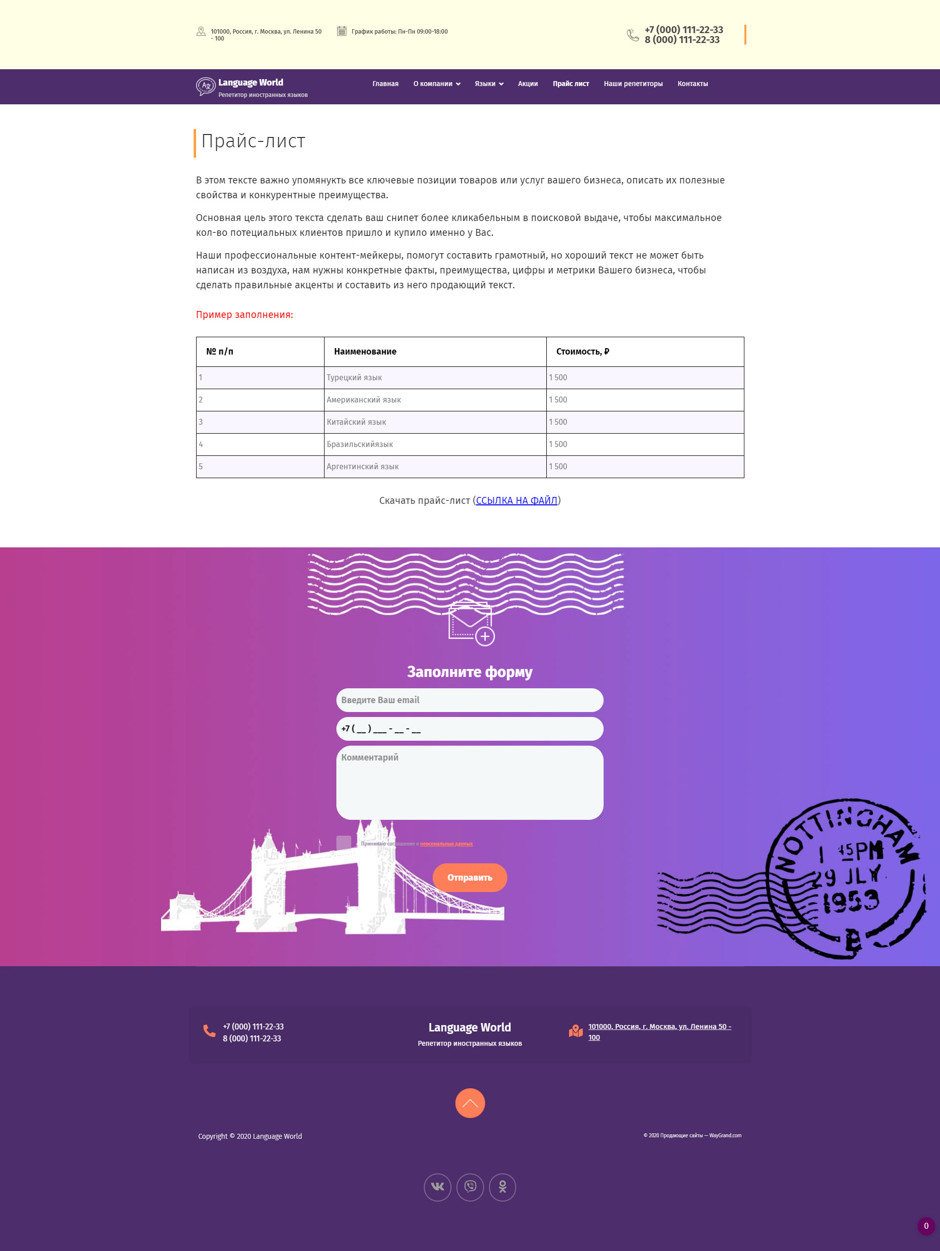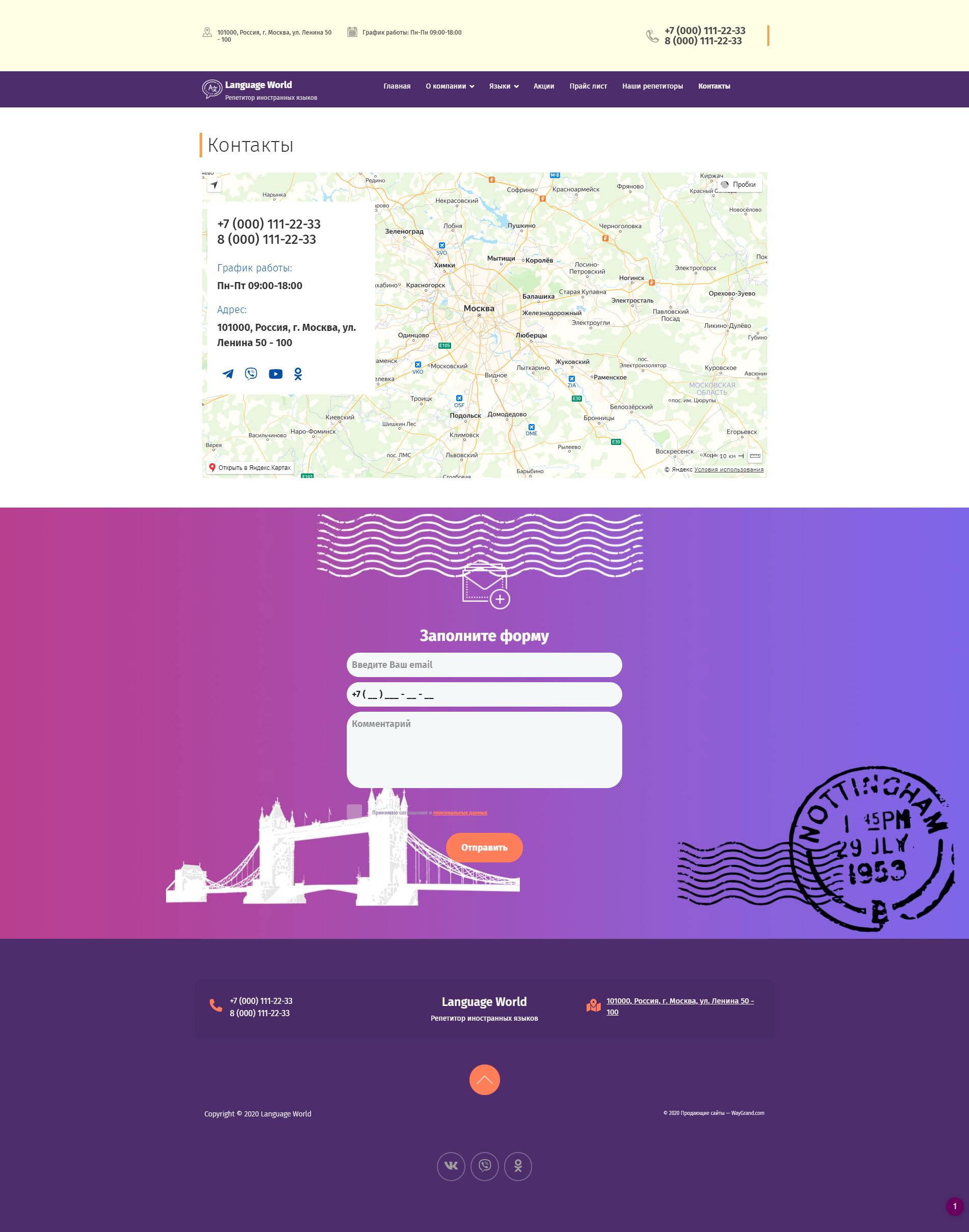 Закажите готовый продающий сайт визитка #1448301 в Соликамске за 5-7 дня «под ключ»: свёрстан, отрисован и готов к рекламе. Тематика шаблона «Курсы иностранных языков».