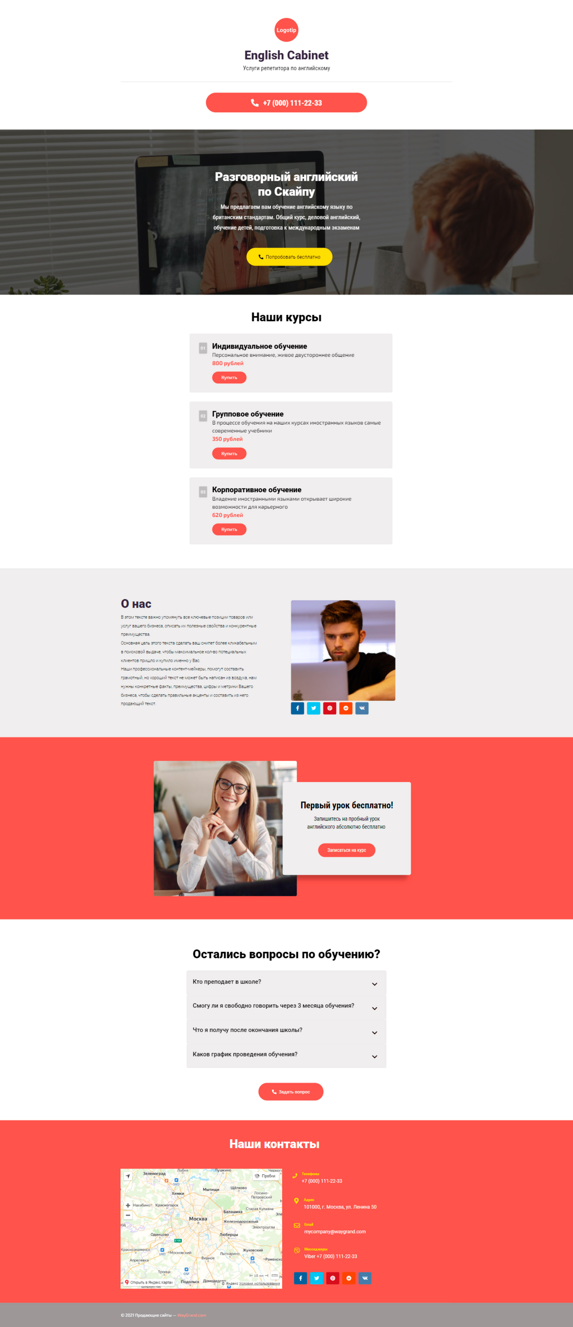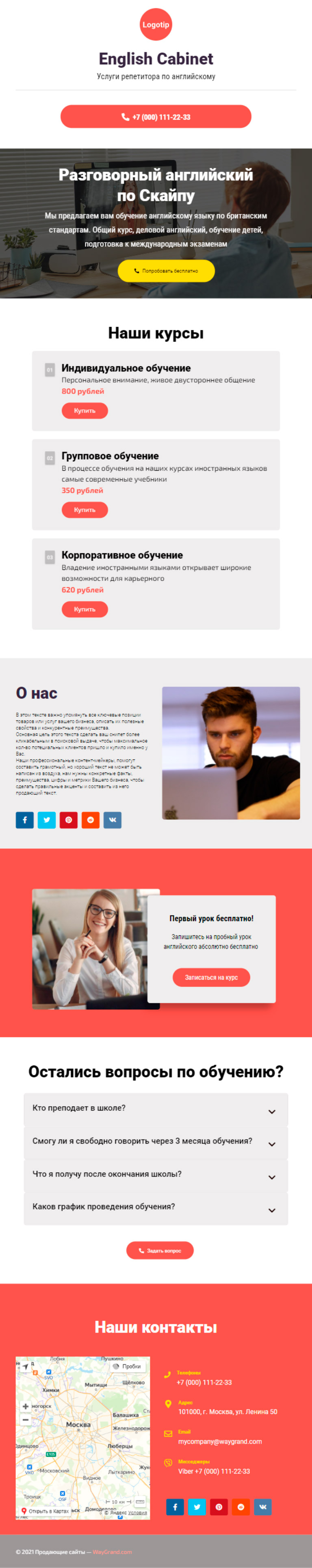 Закажите готовый продающий сайт визитка #1463101 в Соликамске за 5-7 дня «под ключ»: свёрстан, отрисован и готов к рекламе. Тематика шаблона «Услуги репетитора по английскому».