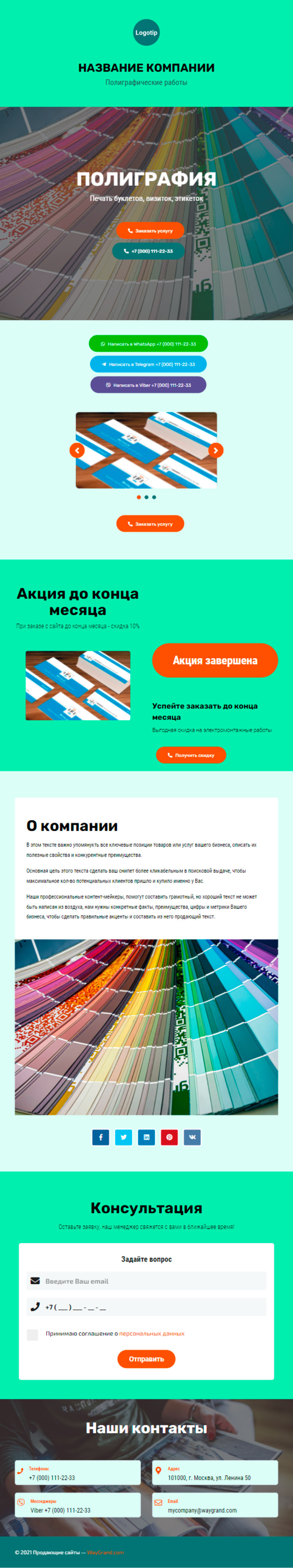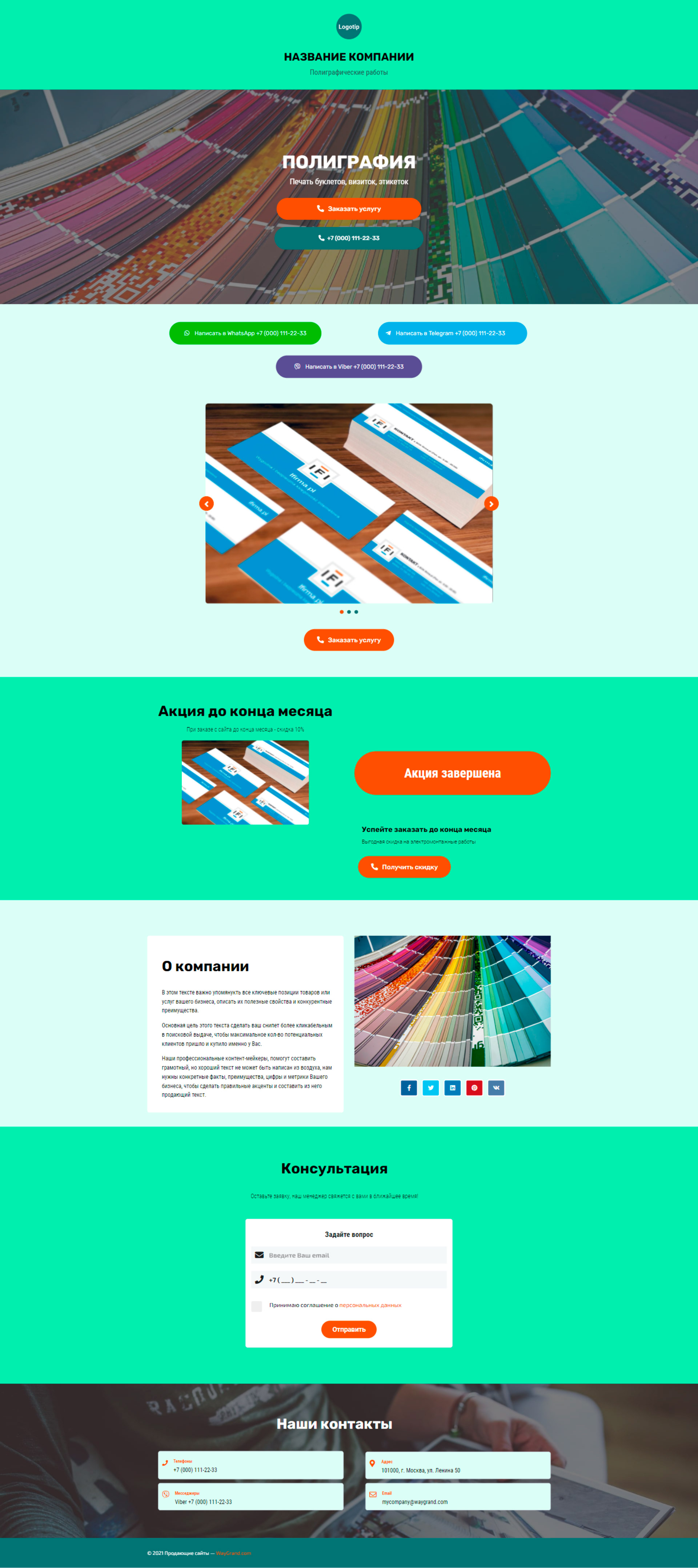 Закажите готовый продающий сайт визитка #1826101 в Соликамске за 5-7 дня «под ключ»: свёрстан, отрисован и готов к рекламе. Тематика шаблона «Полиграфия».