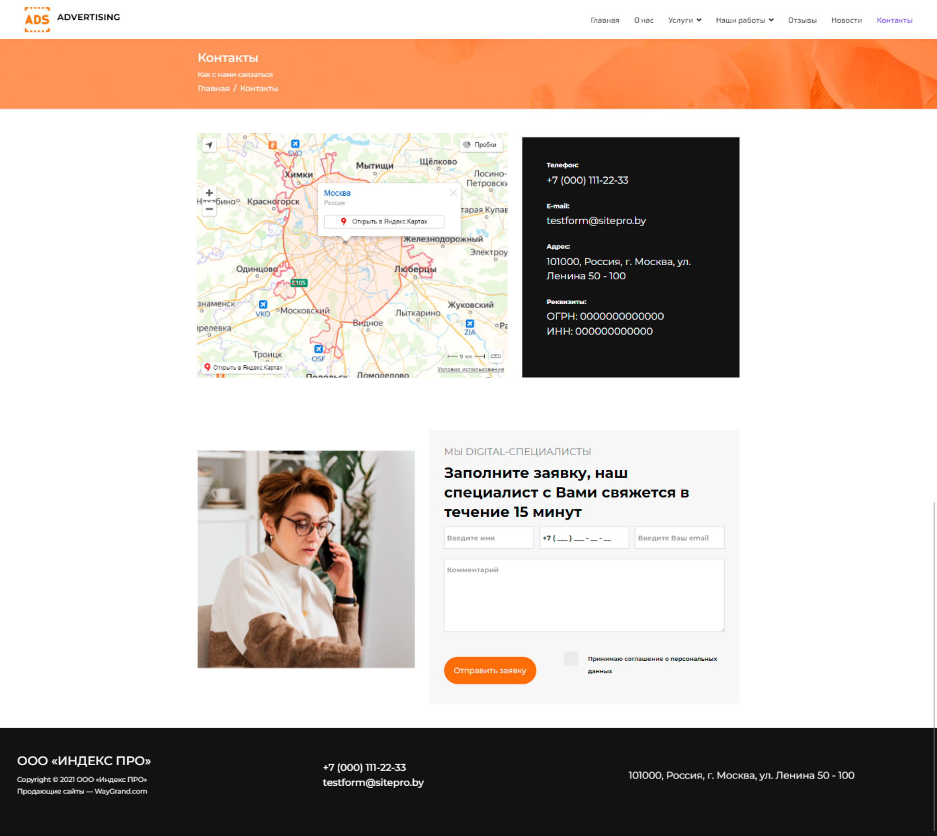 - Страница "Контакты"