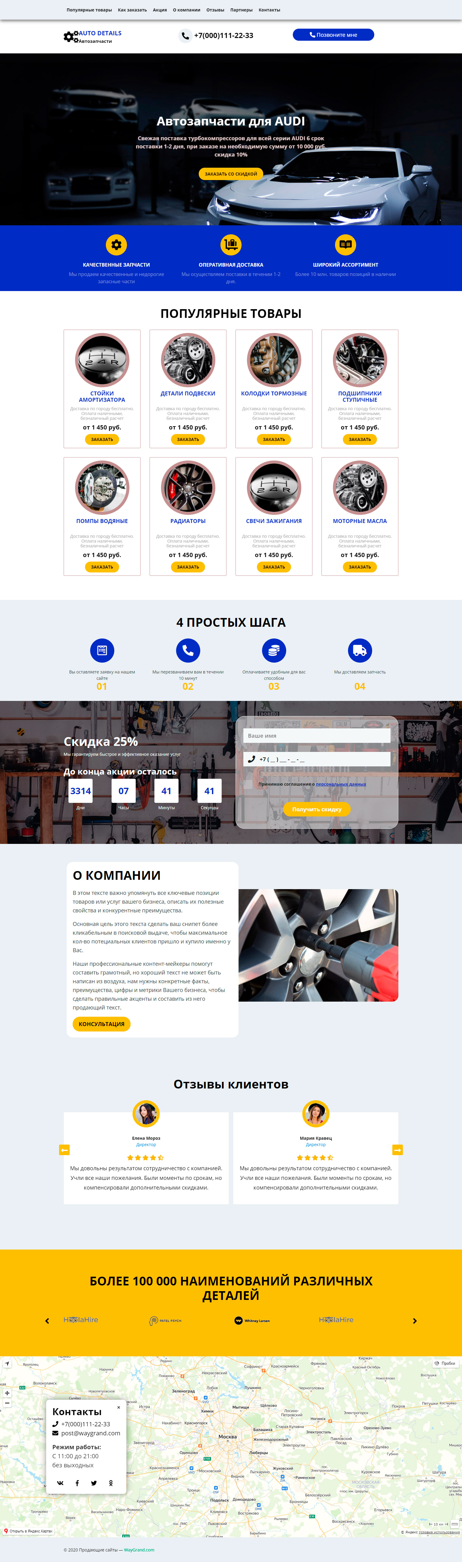 Закажите готовый продающий сайт лендинг #0204202 в Соликамске за 1-3 дня «под ключ» по доступным ценам на Waygrand: свёрстан, отрисован и готов к рекламе. Тематика шаблона «Автозапчасти для AUDI».