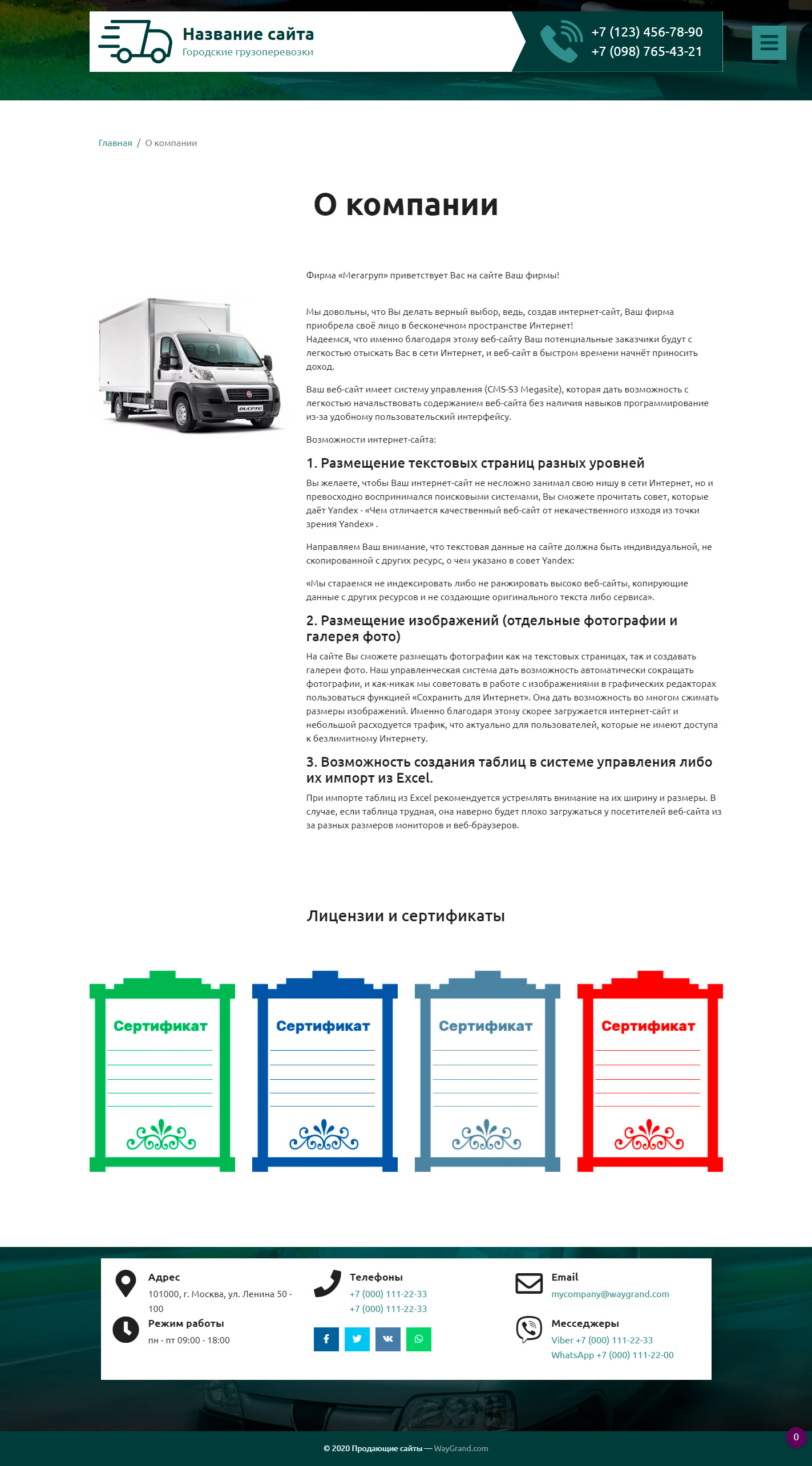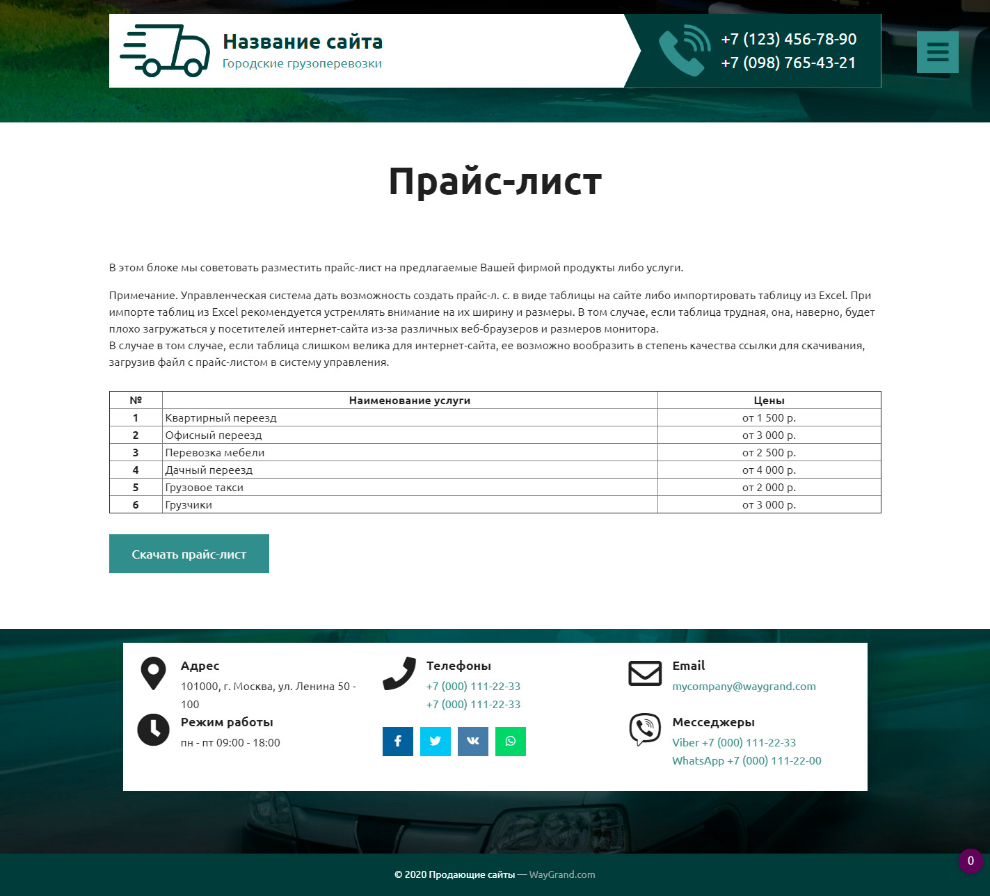 Закажите готовый продающий сайт визитка #2515302 в Соликамске за 5-7 дня «под ключ» по доступным ценам на WayGrand: свёрстан, отрисован и готов к рекламе. Тематика шаблона «Городские грузоперевозки».