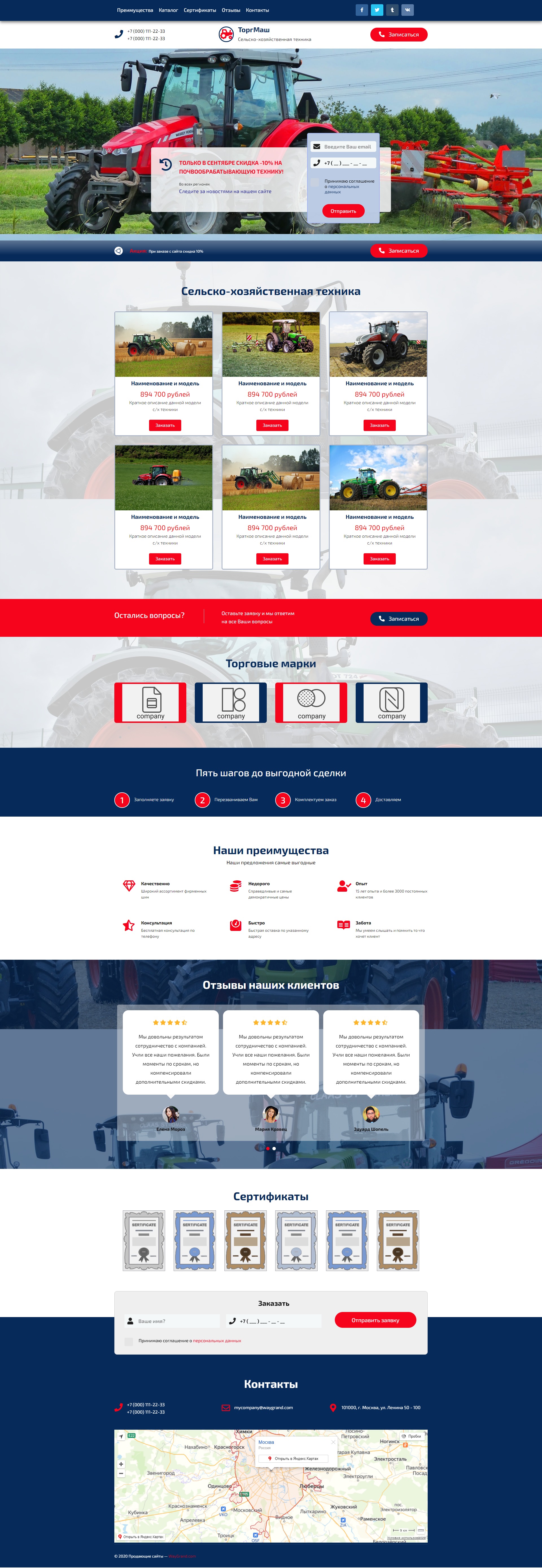Закажите готовый продающий сайт лендинг #2553202 в Соликамске за 1-3 дня «под ключ»: свёрстан, отрисован и готов к рекламе. Тематика шаблона «Сельско-хозяйственная техника».