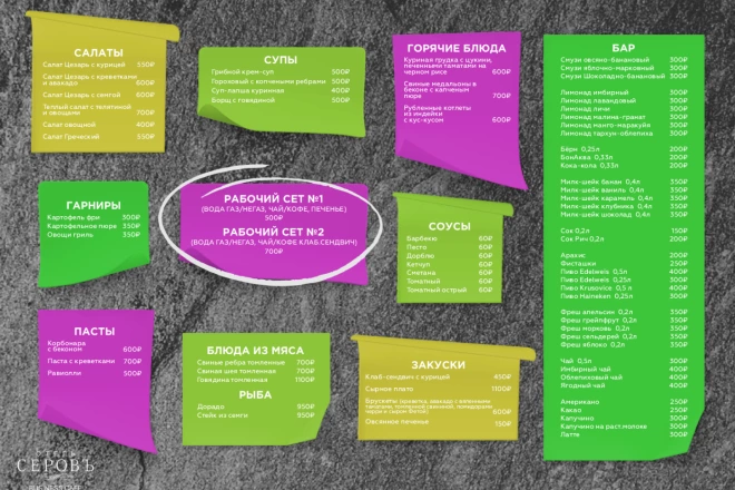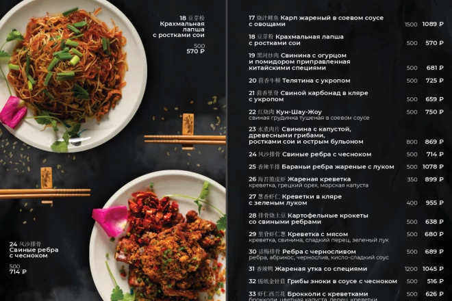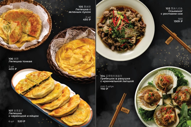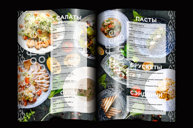 По окончанию работы вы получите "Дизайн одной стороны меню формата А4 (включая печатные исходники)"